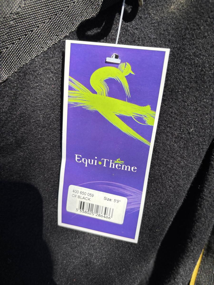 Couverture polaire Equitheme noire liseré or avec deux sangles sous ventrale