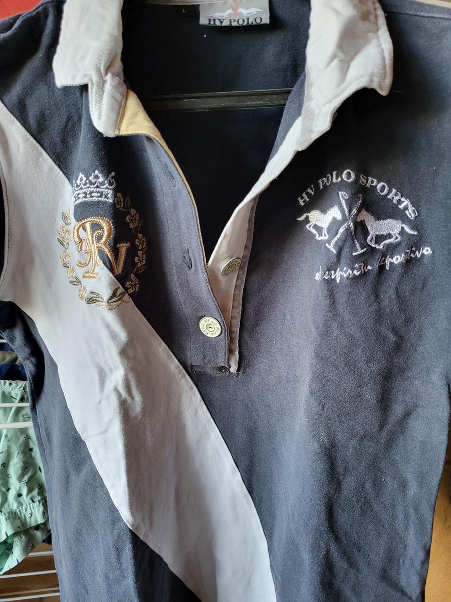 Polo femme HV polo. Taille L. Bon état. Bleu marine et blanc.
