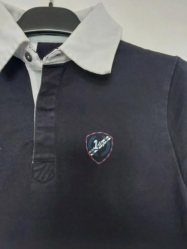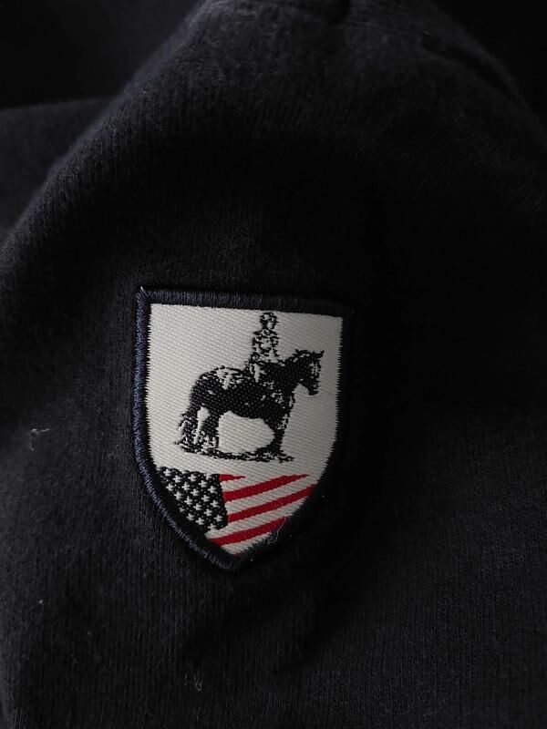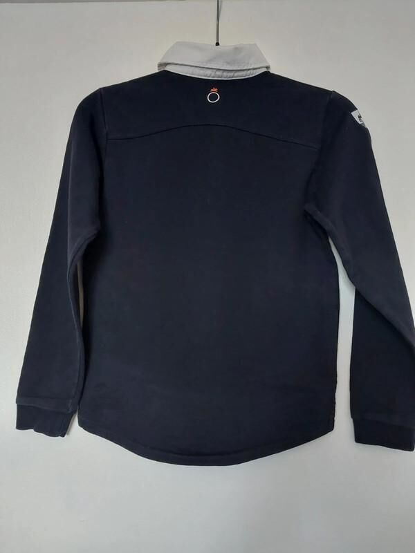 Polo manches longues d'équitation bleu marine de la marque Fouganza. Écusson sur le haut de la manche droite. Très bon état. Taille 12 ans.