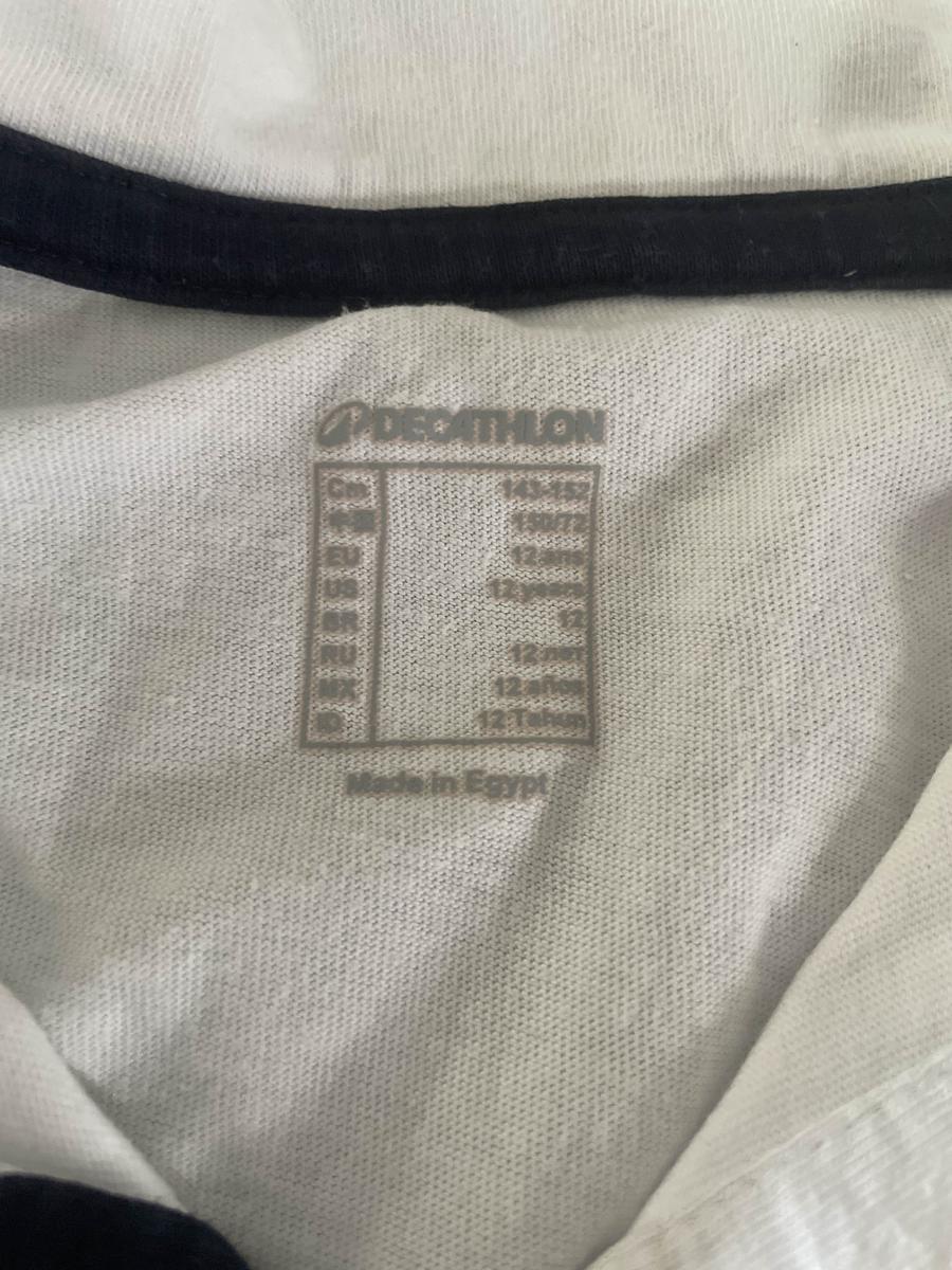 Polo blanc, à manches courtes décathlon 12 ans, avec un cheval dessiné dessus, porter quelques fois, mais en très bon état