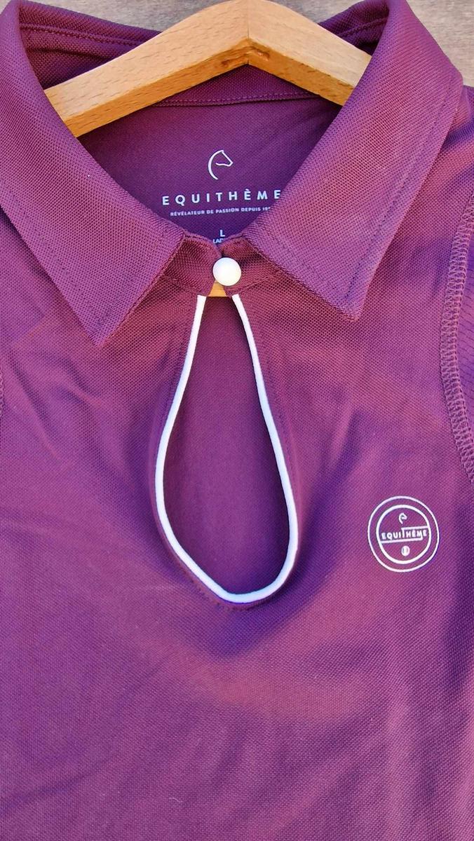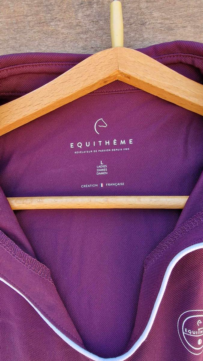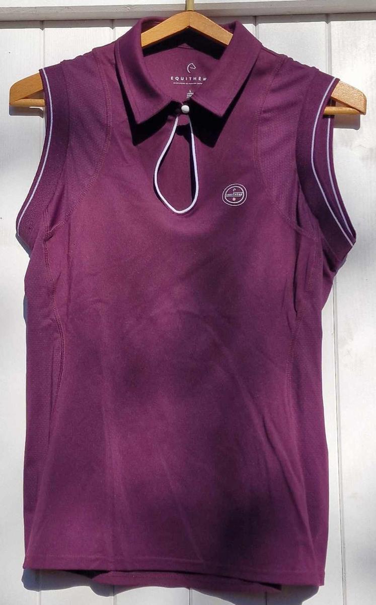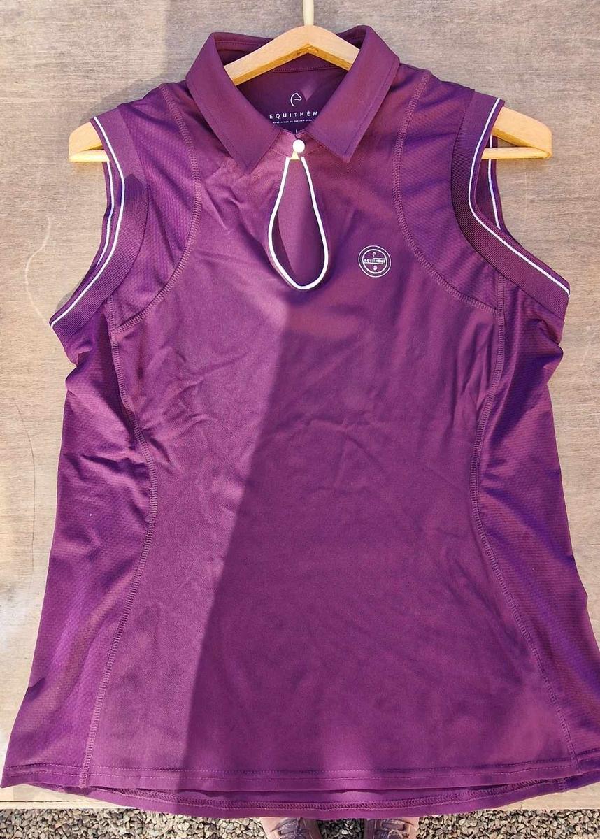 Polo d'équitation sans manches femme Equithème Sarah, neuf sans étiquette, jamais porté, taille L, couleur bordeaux.