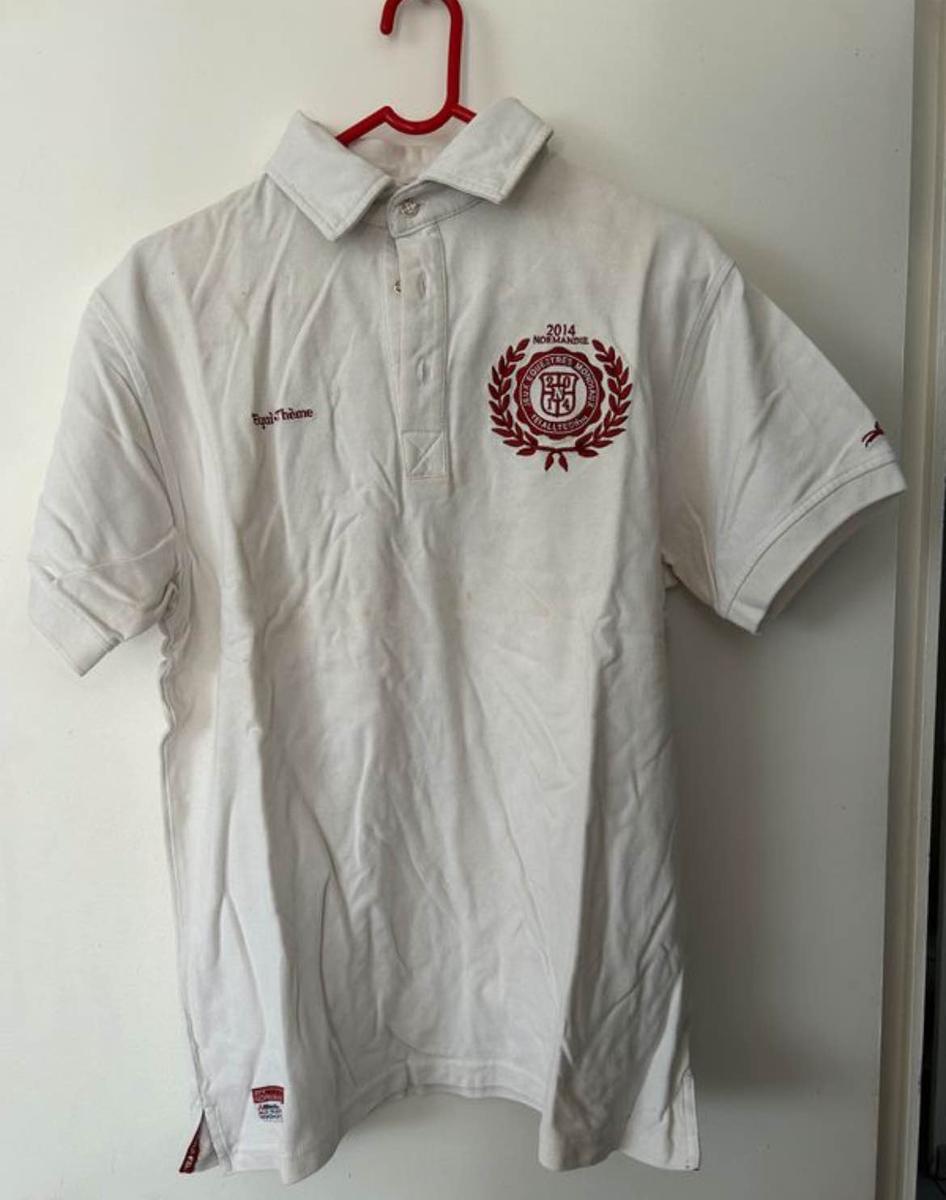 Bonjour à vendre polo d’équitation blanc mondial 2014 taille: L il sera laver puis repasser avant l’achat