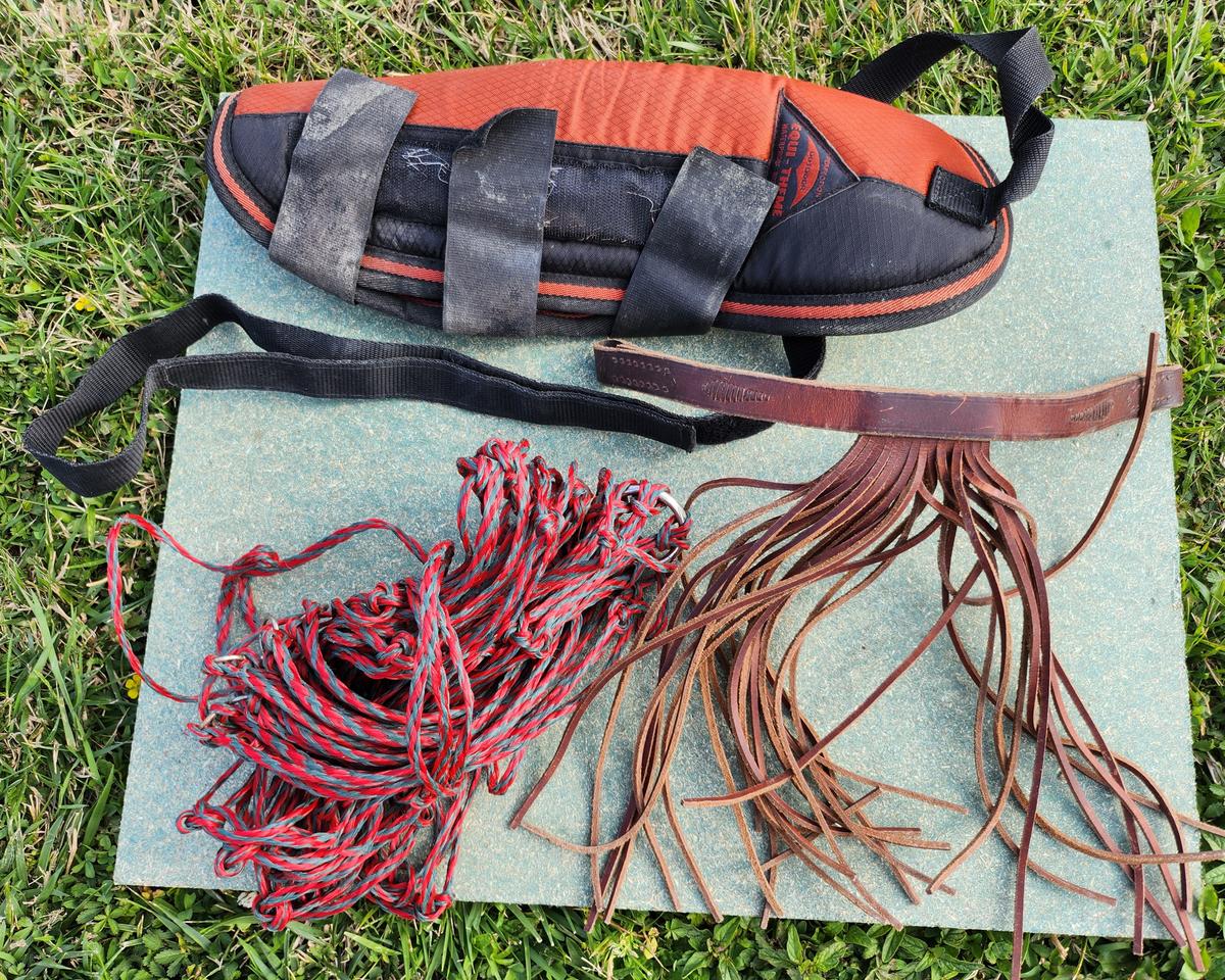 Vends frontal à mouches cuir, protège queue et filet à foins.