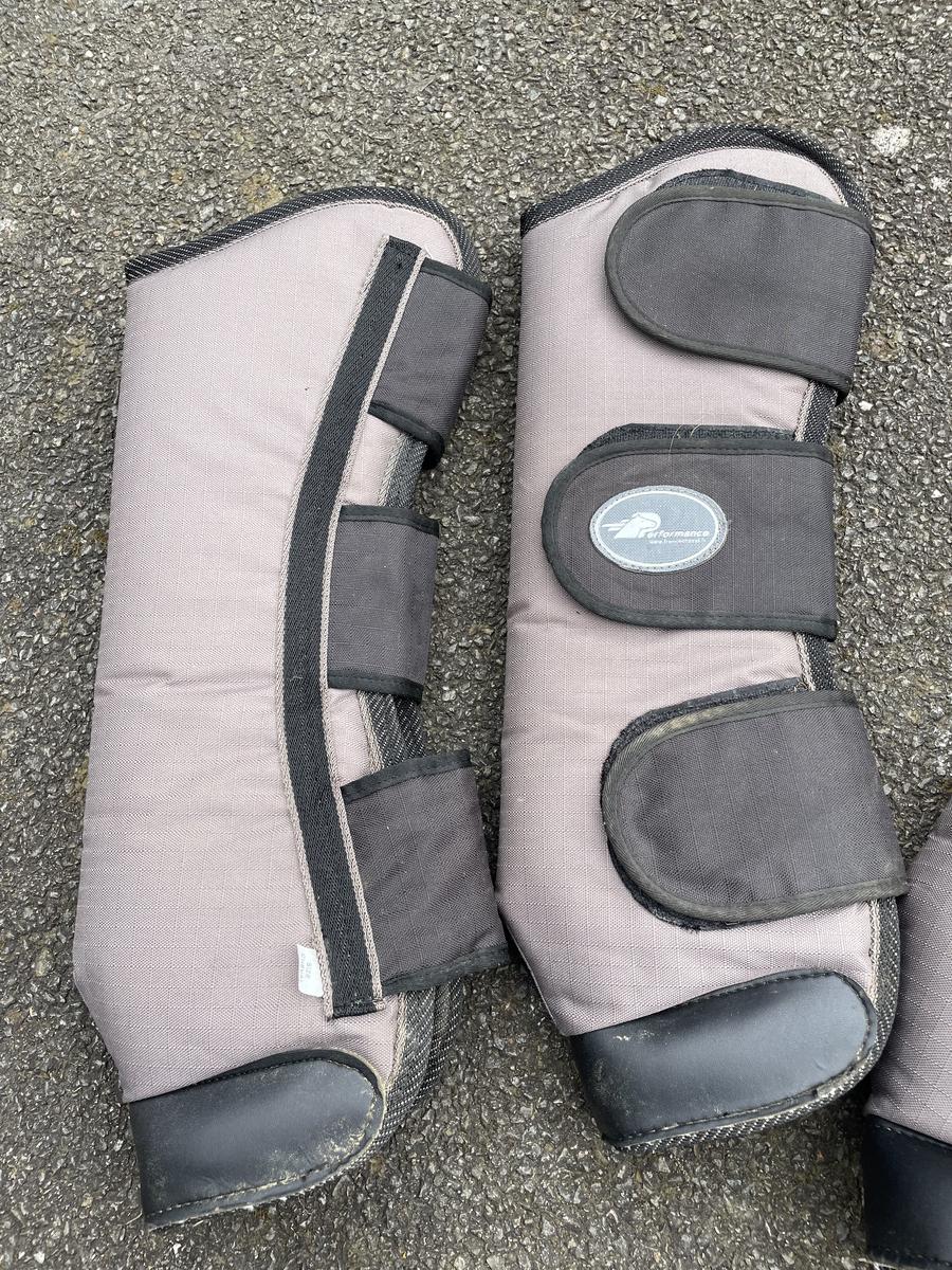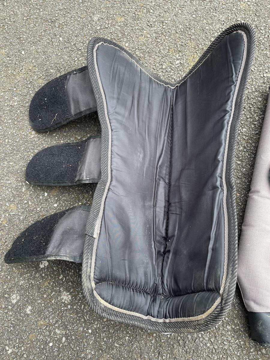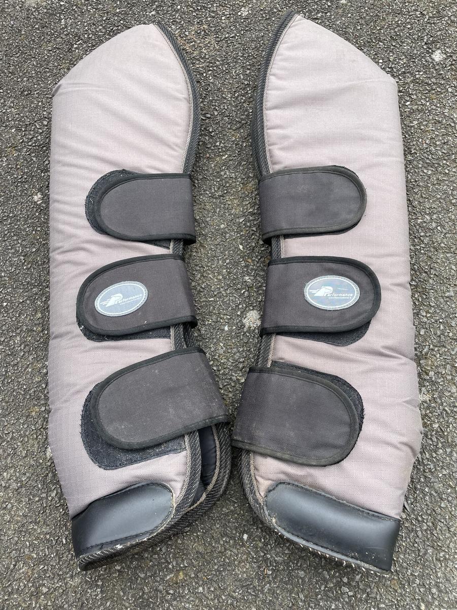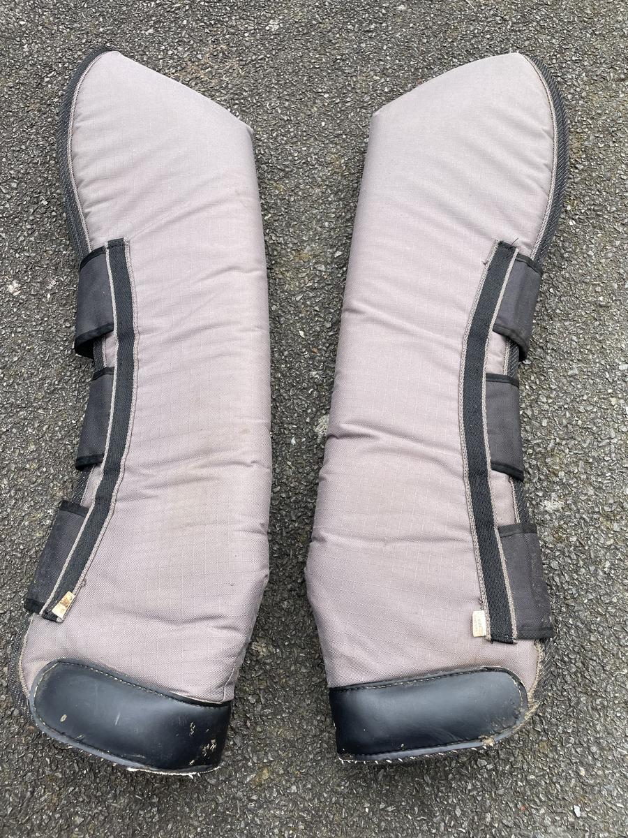 Protection de transport de très bonne qualité. Elle sont taille cheval. Les traces blanches sont des restes de savons, elles partiront au prochain lavage! :)