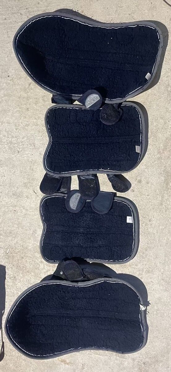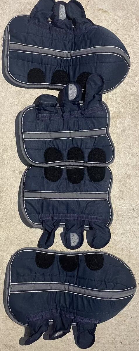 Je vends une paire de guêtres de transport EQUITHÈME Tyrex 600D coloris Marine/Gris Dots, en très bon état.
