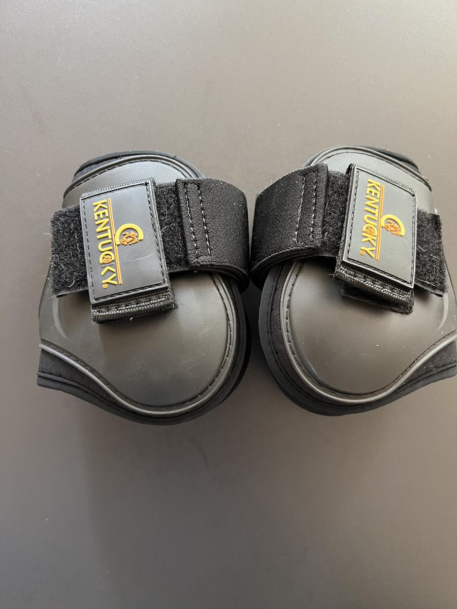 Protège boulets kentucky taille cheval. Doubles coques. Servis quelques fois mais en excellent état, quelques rayures dus aux frottement des sabots. Élastiques et scratch en super état