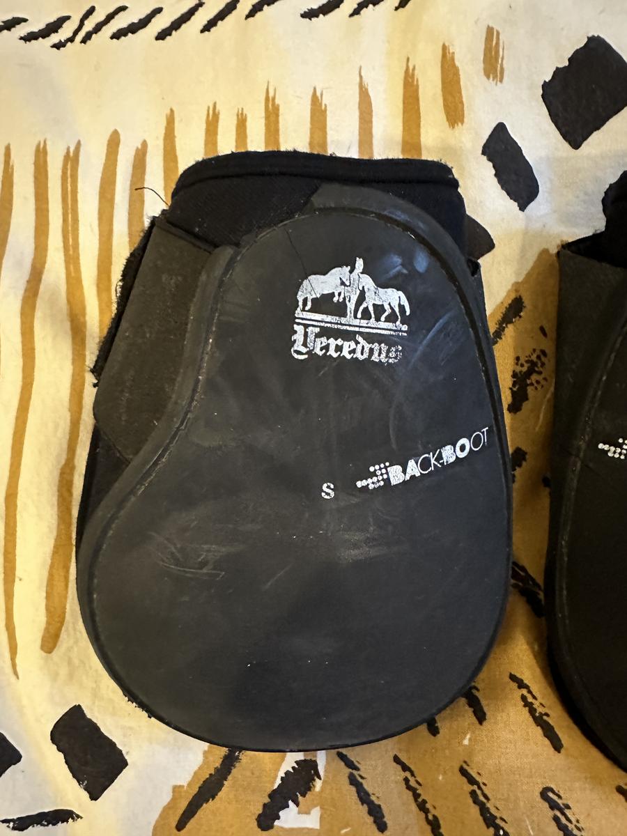 Protège-boulets Veredus Backboot, couleur noire, taille S (poney), en très bon état. Ces protège-boulets offrent une excellente protection des postérieurs tout en garantissant confort et liberté de mouvement. Idéals pour un usage en compétition ou à l'entraînement. Marque reconnue pour sa qualité haut de gamme. Prix neuf autour de 80 à 100 €. Envoi rapide. Prix : 50€.