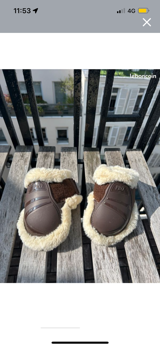 Protèges boulets Lami Cell marron taille L et moumoute blanche.
