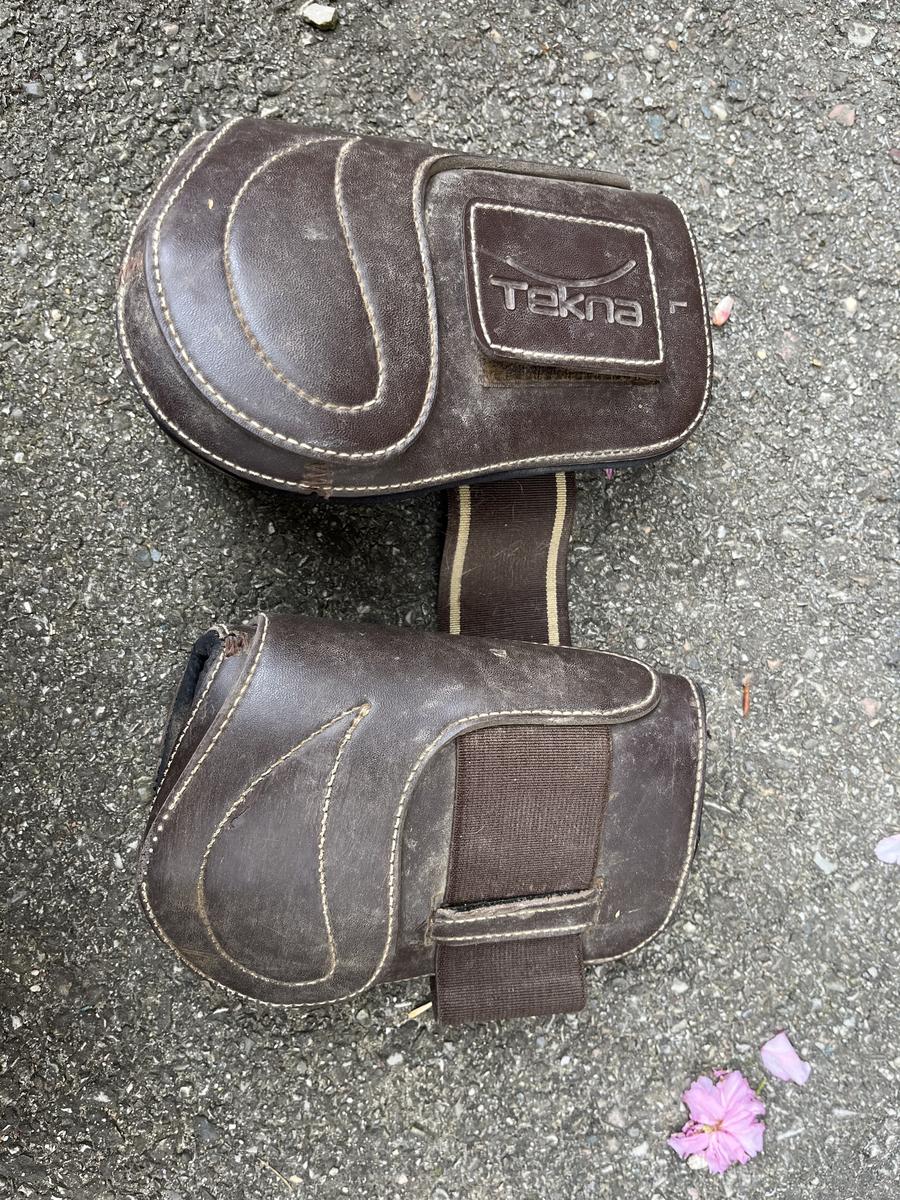 Protège boulet marron taille L double coques très pratique pour le paddock