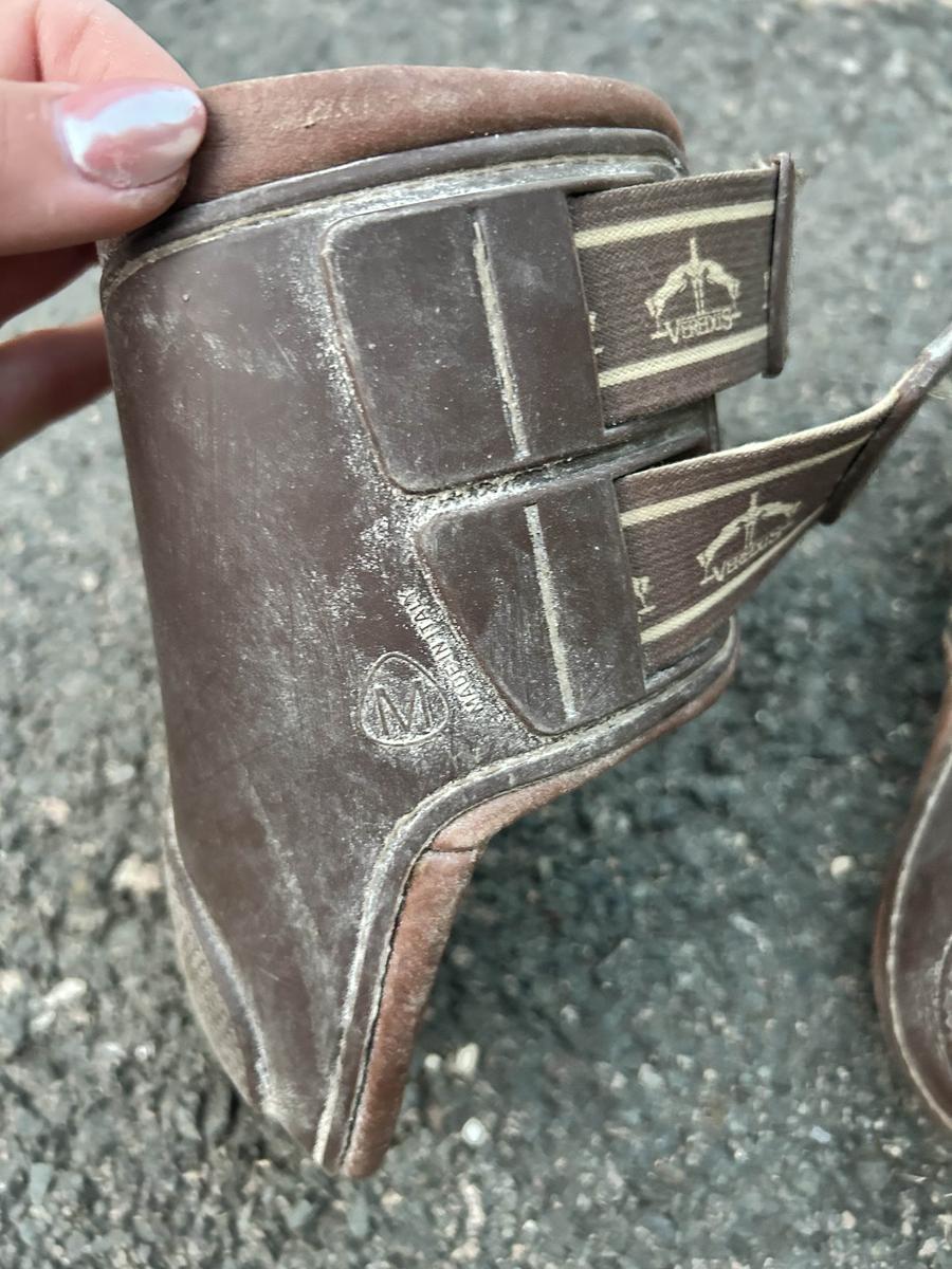 Protège boulets taille M, intérieur cuir, en bon état, quelques petits accrocs voir photos