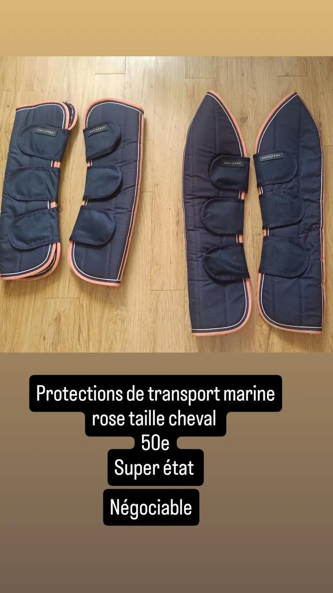 Protections de transport équithème bleu marine et rose.