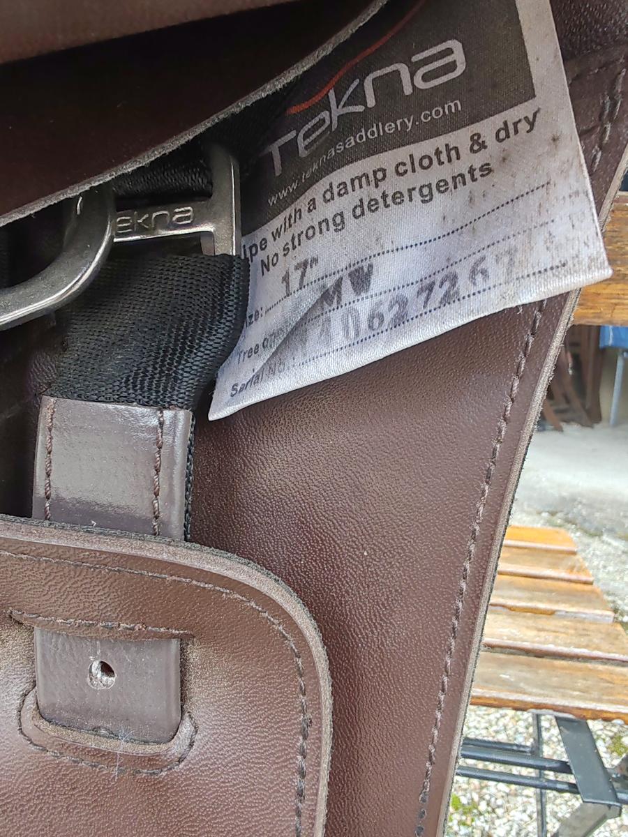Selle synthétique recouverte de cuir de veau alors que du côté cheval : cuir synthétique hypoallergénique résistant et facile d’entretien, siège creux, taquets à l’avant réglables et amovibles (velcro), sanglons facilement remplaçables.