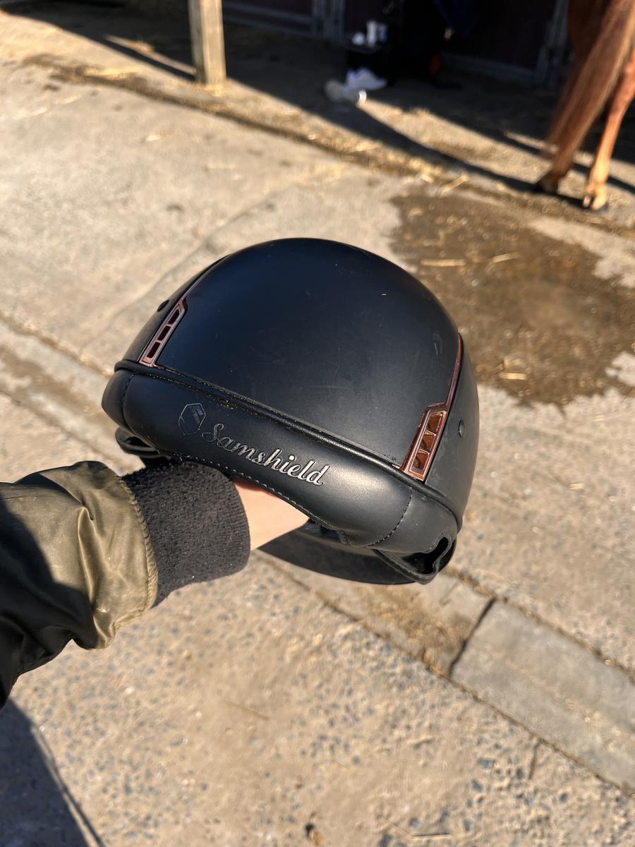 Bombe miss shield noir Matt et rose gold. Elle a quelques griffe mais protège toujours autant !