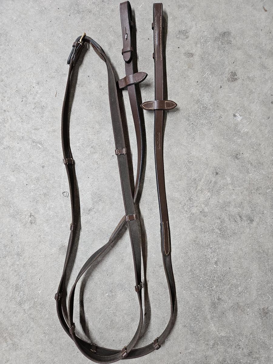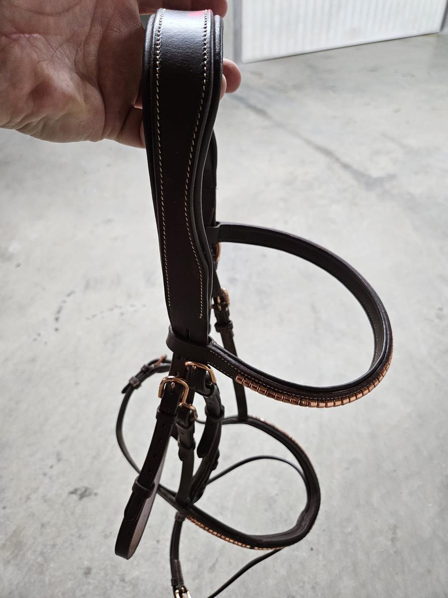 Filet Norton taille CS couleur Havane. Modèle qui ne se vend plus. Vendu sans mors mais avec les rênes Norton Pro couleur havane modèle Sangle. En très bon état, utilisé une dizaine de fois. Certaines perles sont légèrement oxydées. L'ensemble a été acheté cet été.