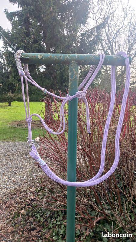 Licol éthologique taille COB en corde lilas bleu et blanc par la Fabrique 2 Lapin.
