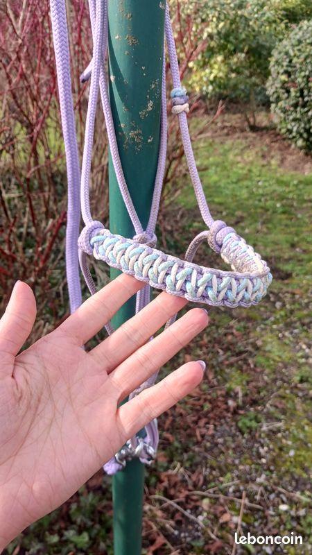 Licol éthologique taille COB en corde lilas bleu et blanc par la Fabrique 2 Lapin.