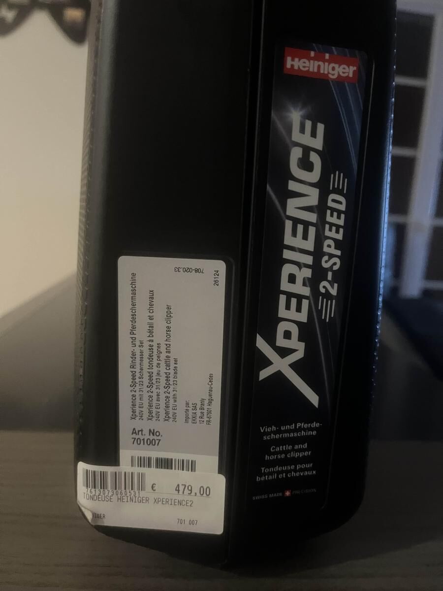 Tondeuse Heiniger achetée chez padd, elle possède 2 vitesse. Elle est toute neuve et n’a même pas tondu un cheval. je la vend car ma ponette ne voulais pas se laisser tondre. je l’ai acheté 479€, je l’a revend 410€