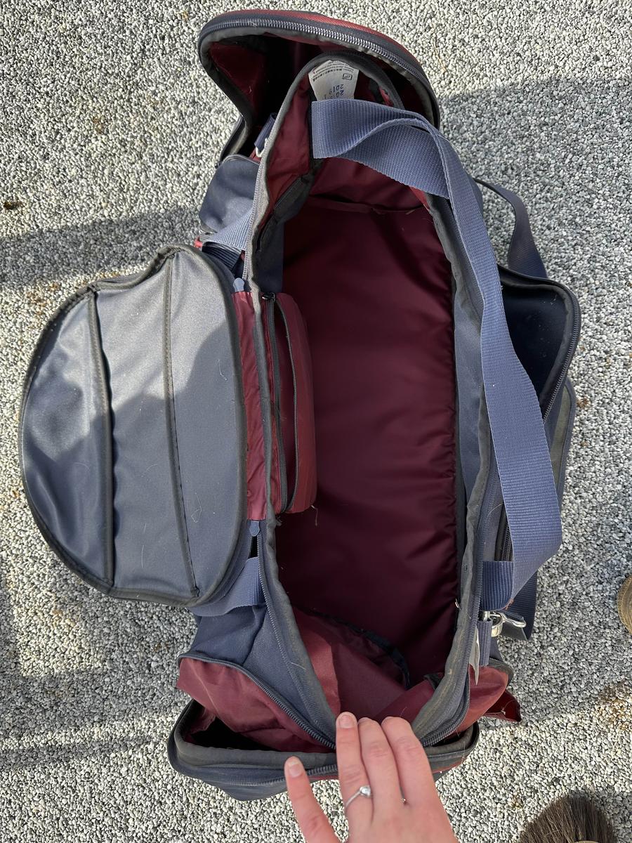 grand sac de rangement fouganza neuf bleu et rouge. il a étais très sœur utilisé et très bien conservé il seras re nettoyé à neuf lors de la vente !