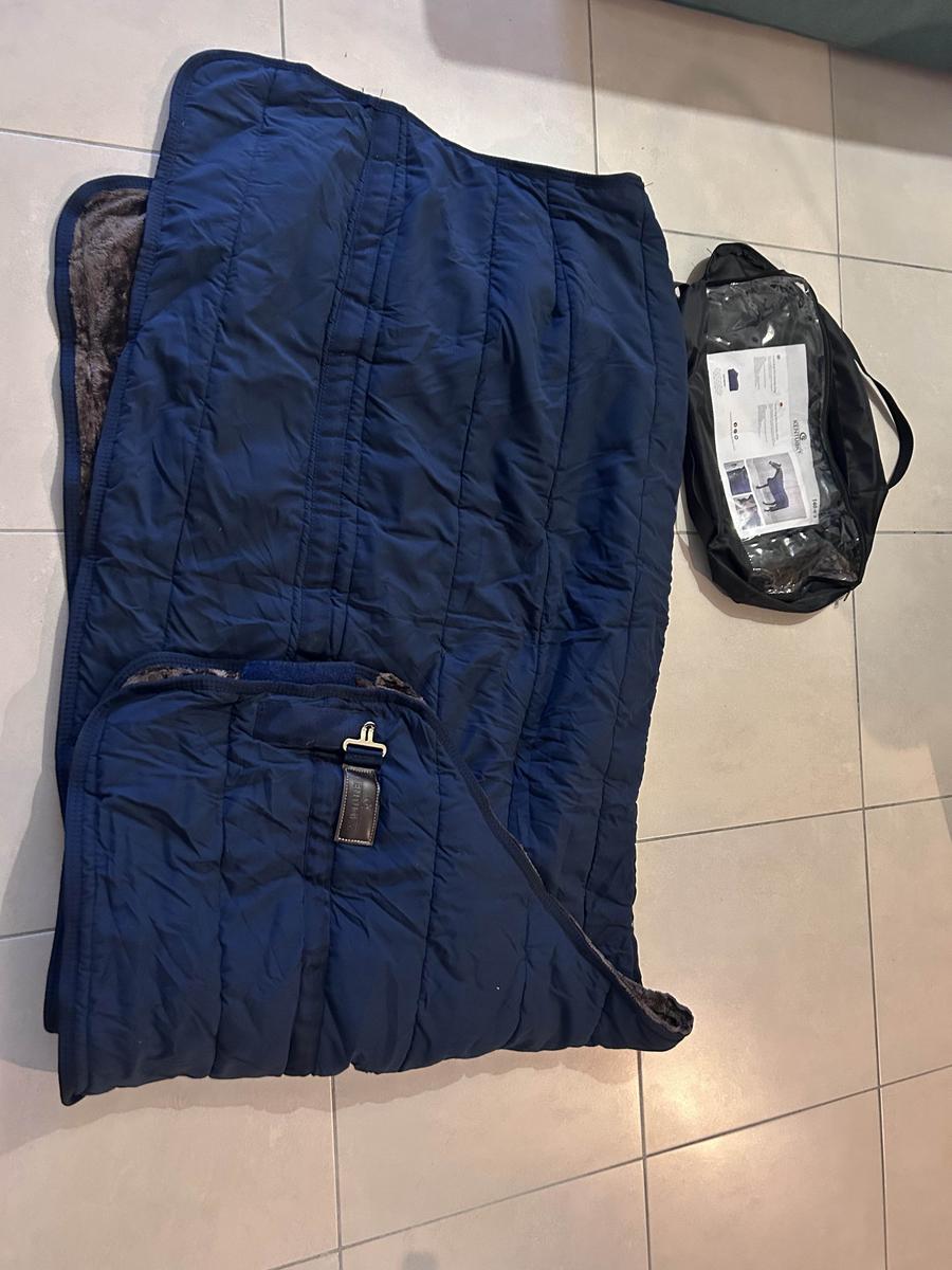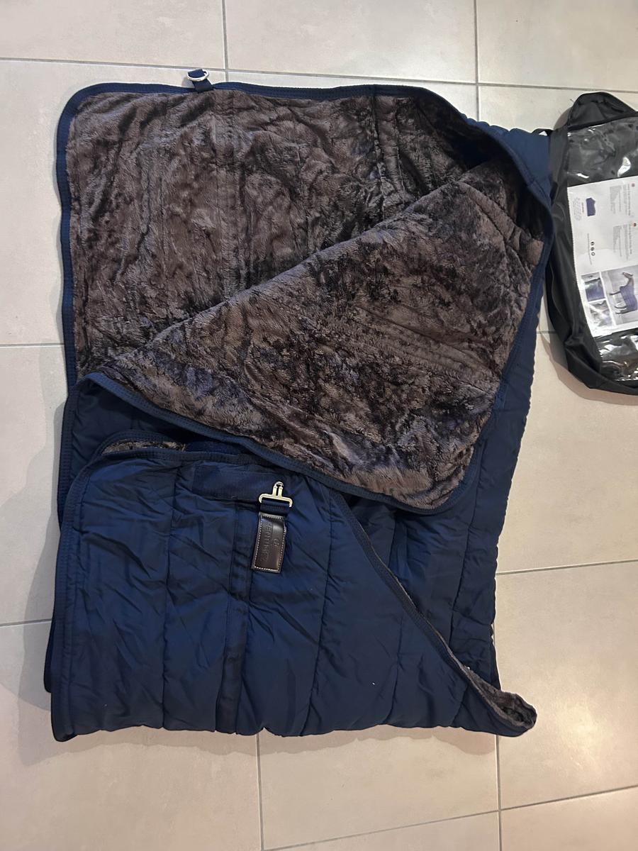porté une fois, lavée. ma jument a cassé une boucle pour rajouter un passage de queue derrière (en la portant une seule fois…).
