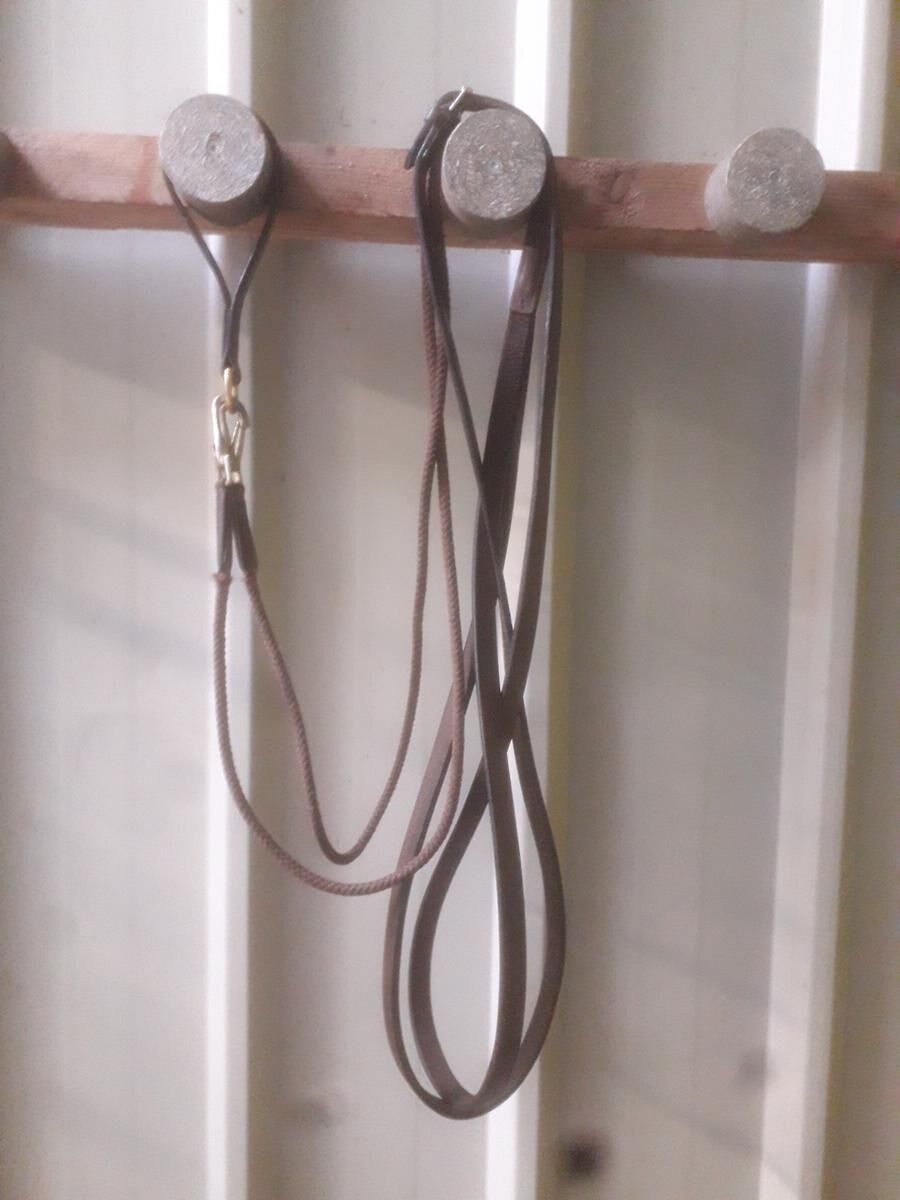 paire de renes allemandes en cuir corde avec mousquetons + attache de sangle