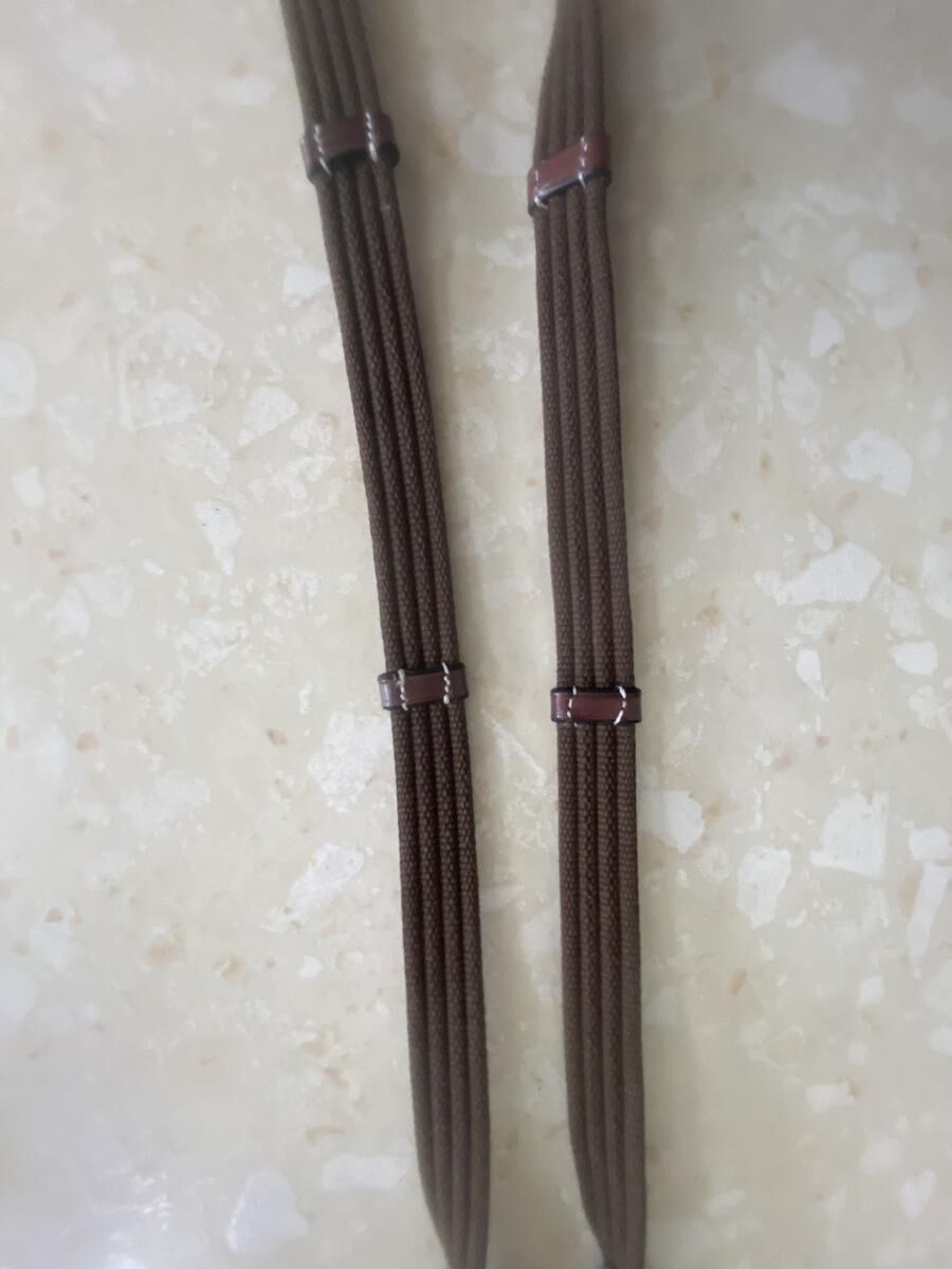 Rênes avec un beau cuir marron puis en tissu au niveau des mains