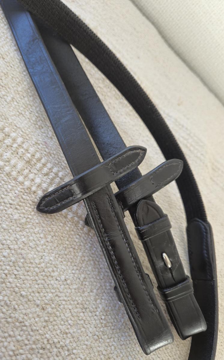 Rênes passier cuir taille cheval en tissus avec arretoirs en grip cuir noir