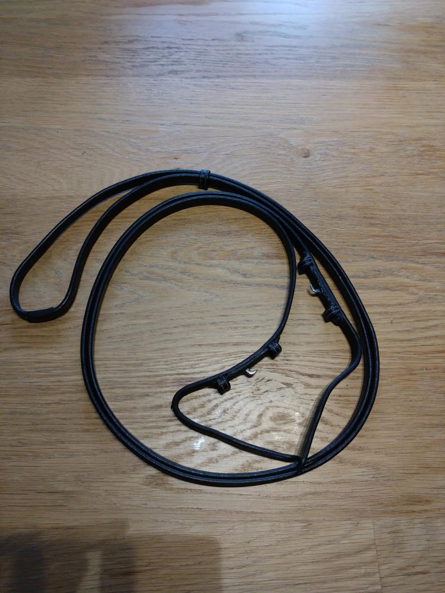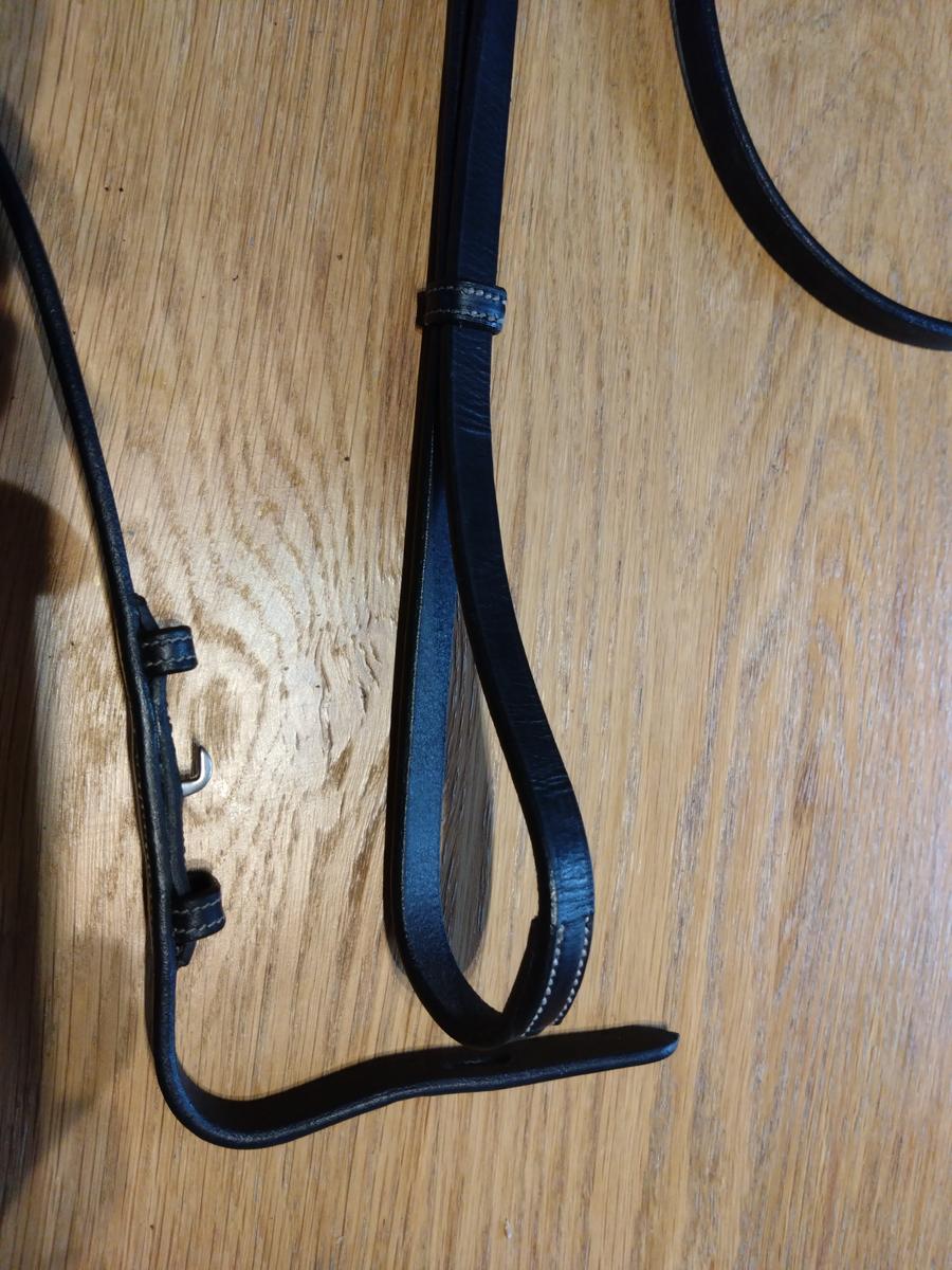 Rênes de bride utilisées 2 fois, cuir pleine fleur, coloris noir
