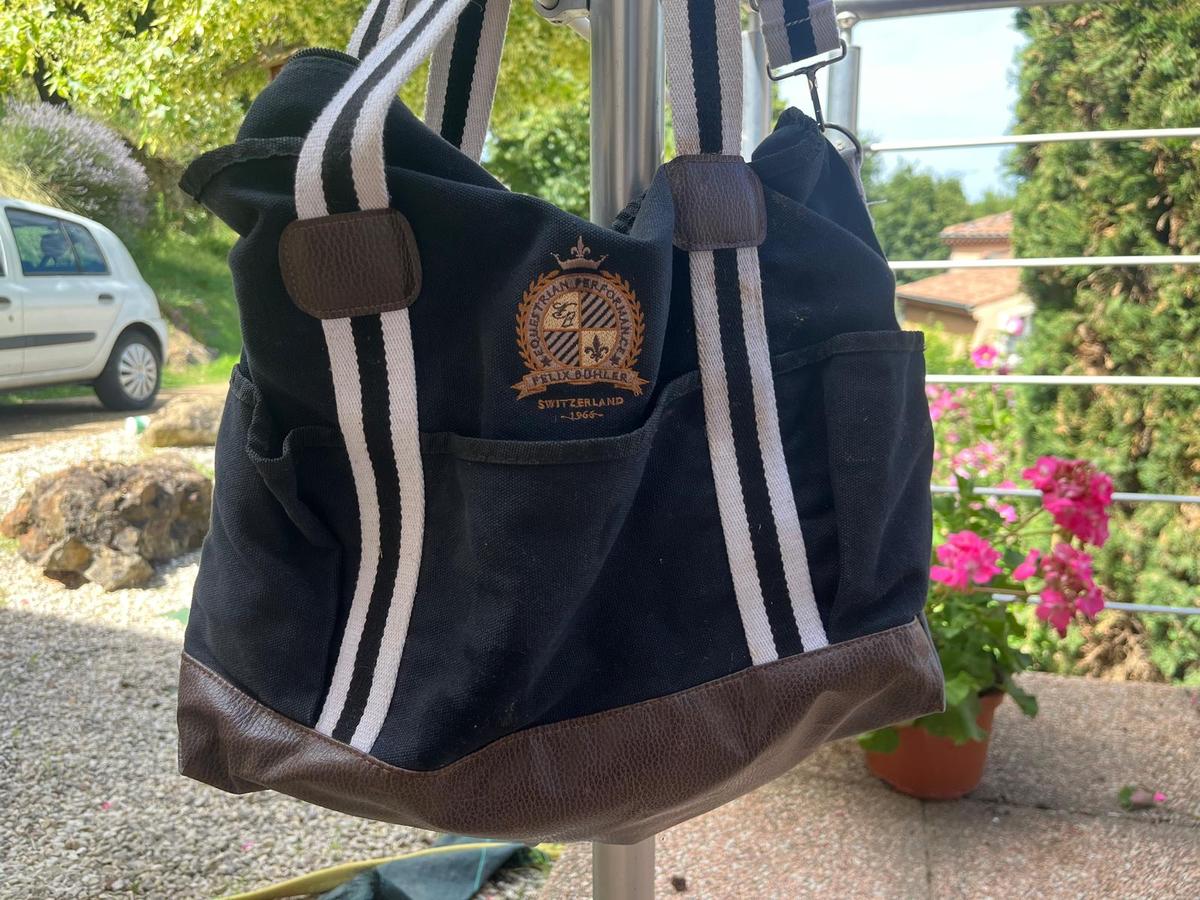 A vendre sac Felix Bühler bon état. Noir/blanc/ simili cuir (détails et fond du sac). Deux sangles latéral + une anse pour le porter en bandoulière.