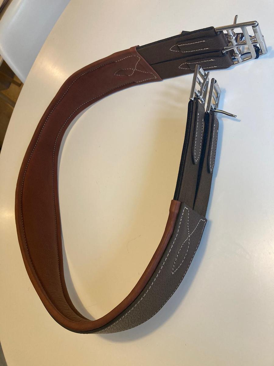 Full cuir, bouclerie acier, élastiques des deux côtés.