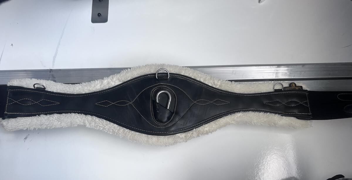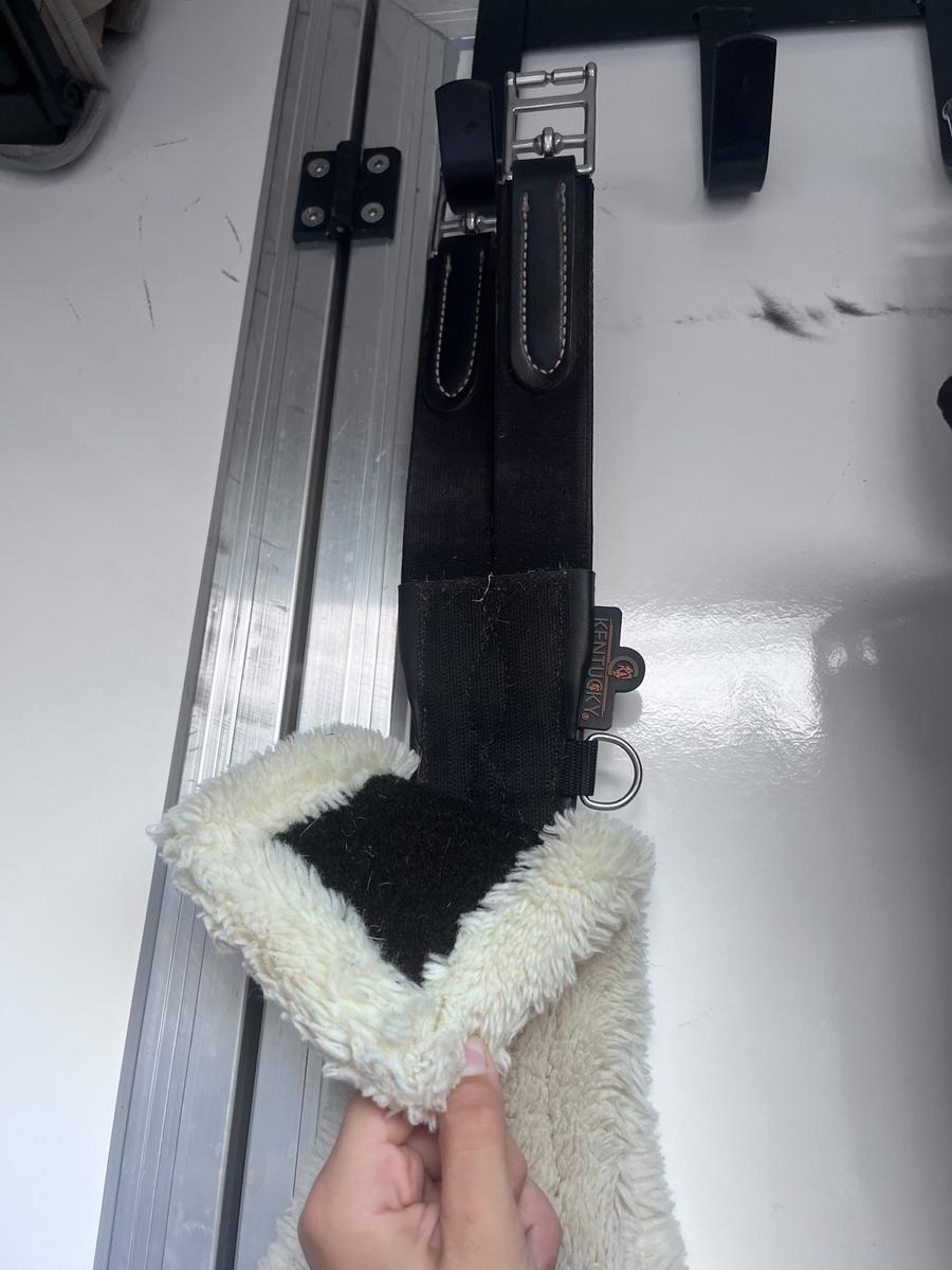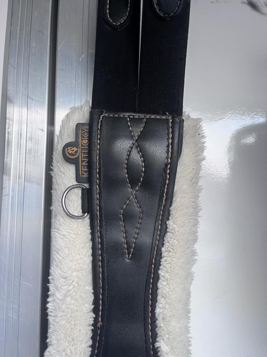 Sangle noir mouton Kentucky anatomique en taille 115cm. Mouton amovible et lavable en machine à 30•c. Sangle en très bon état général ; toujours bien entretenu; le mouton est en parfait état. Quelques traces au niveau du centre de la sangle ( voir photo ) mais ne gêne en rien et ne se voit pas une fois en place .