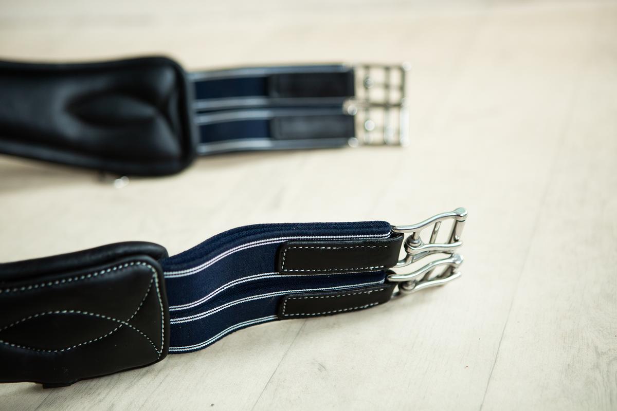 Élastiques bleu marine (des deux côtés). Doublée gel, coupe anatomique.