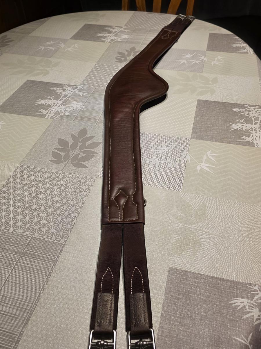 Sangle longue confort Forestier 135 cm ▪ Forme incurvée et large pour plus de confort ▪ Mousse à mémoire de forme ▪ Dégage les coudes ▪ Possibilité de mettre des enrênements grâce aux dés Couleur - Châtaigne Prix nouveau 242 euros
