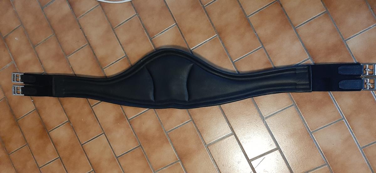 Sangle longue anatomique pour une répartition idéale de la pression sous le ventre du cheval.
