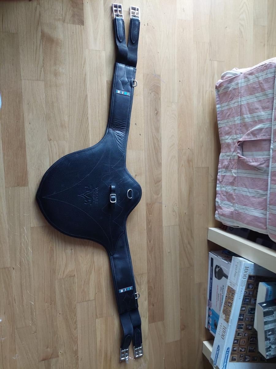 Sangle comme neuve. On me l'a offerte mais elle est beaucoup trop grande pour ma jument. Elle n'a été essayée qu'une fois, donc elle est dans un état parfait