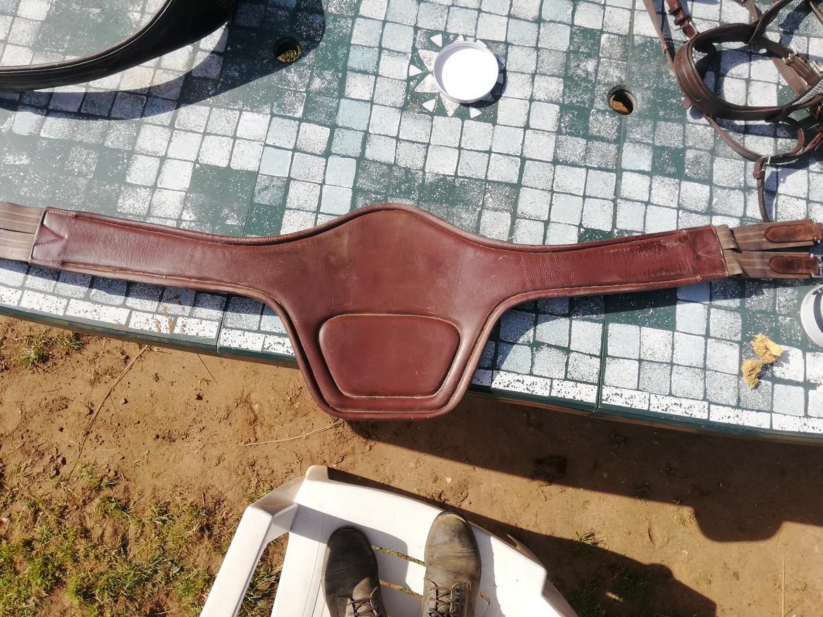 Sangle after riding (hv polo) marron t135, état correct, manque la petite bille qui sert à attacher la lanière mais n'empêche en rien son utilisation