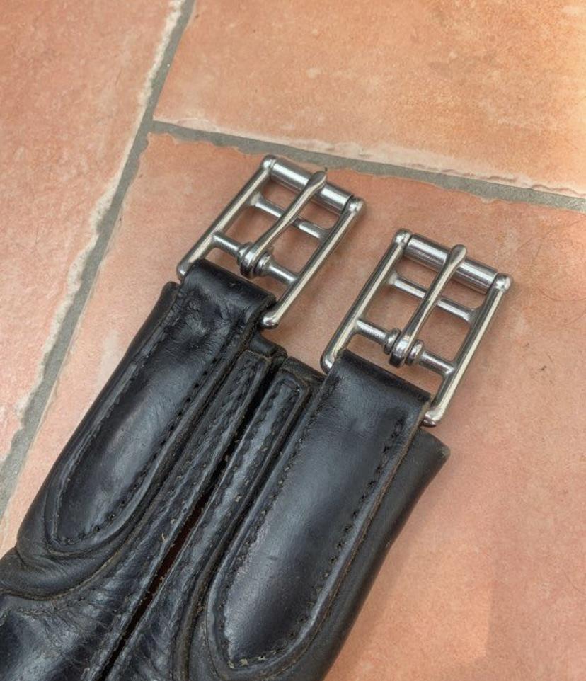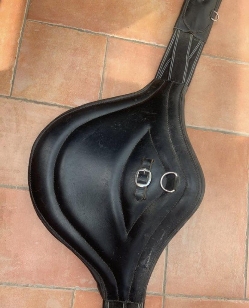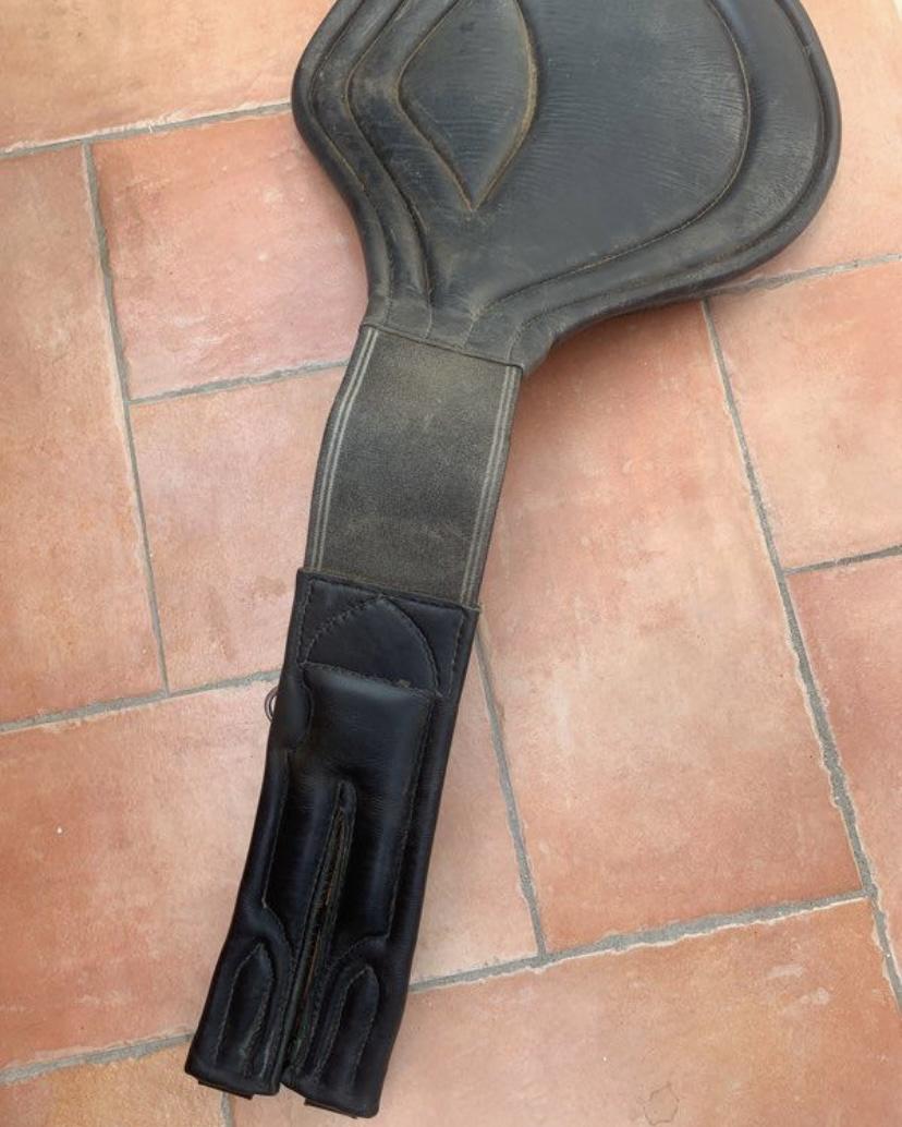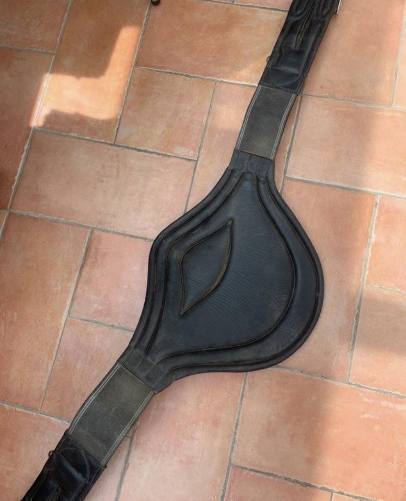 Descriptif : Sangle bavette surpiquée, entièrement matelassée et doublée en cuir de vachette souple et confortable.