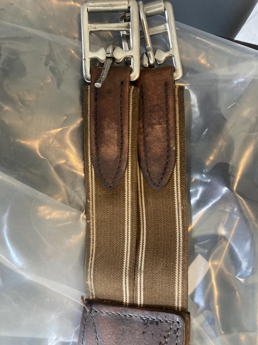 Elle a servi (le mousqueton est rouillé et il y’a des traces de crampons), mais elle est en bon état général, RAS au niveau des sanglons et des boucles.