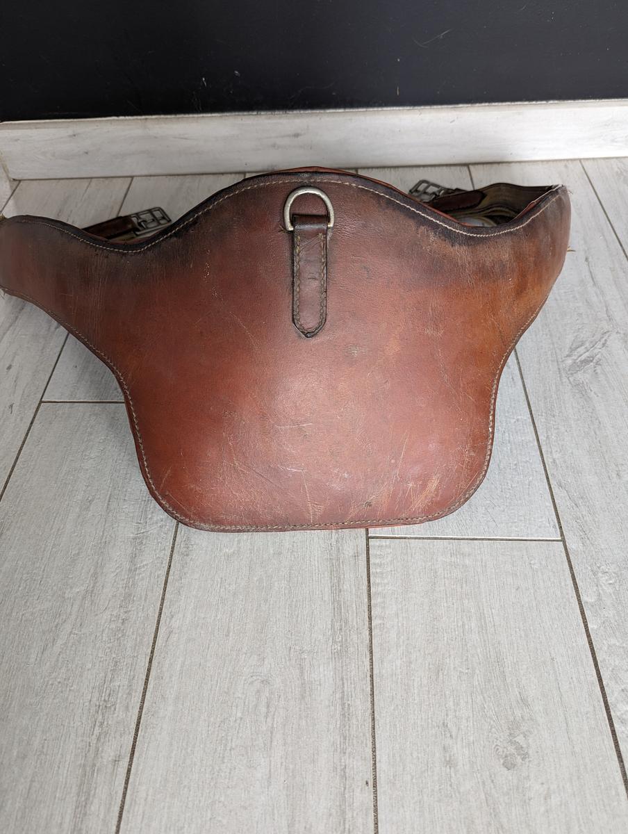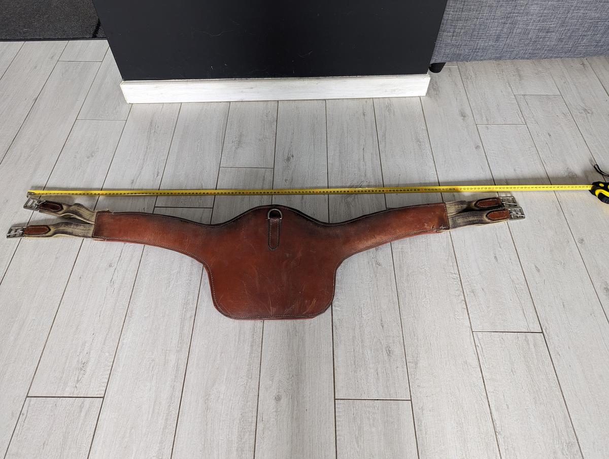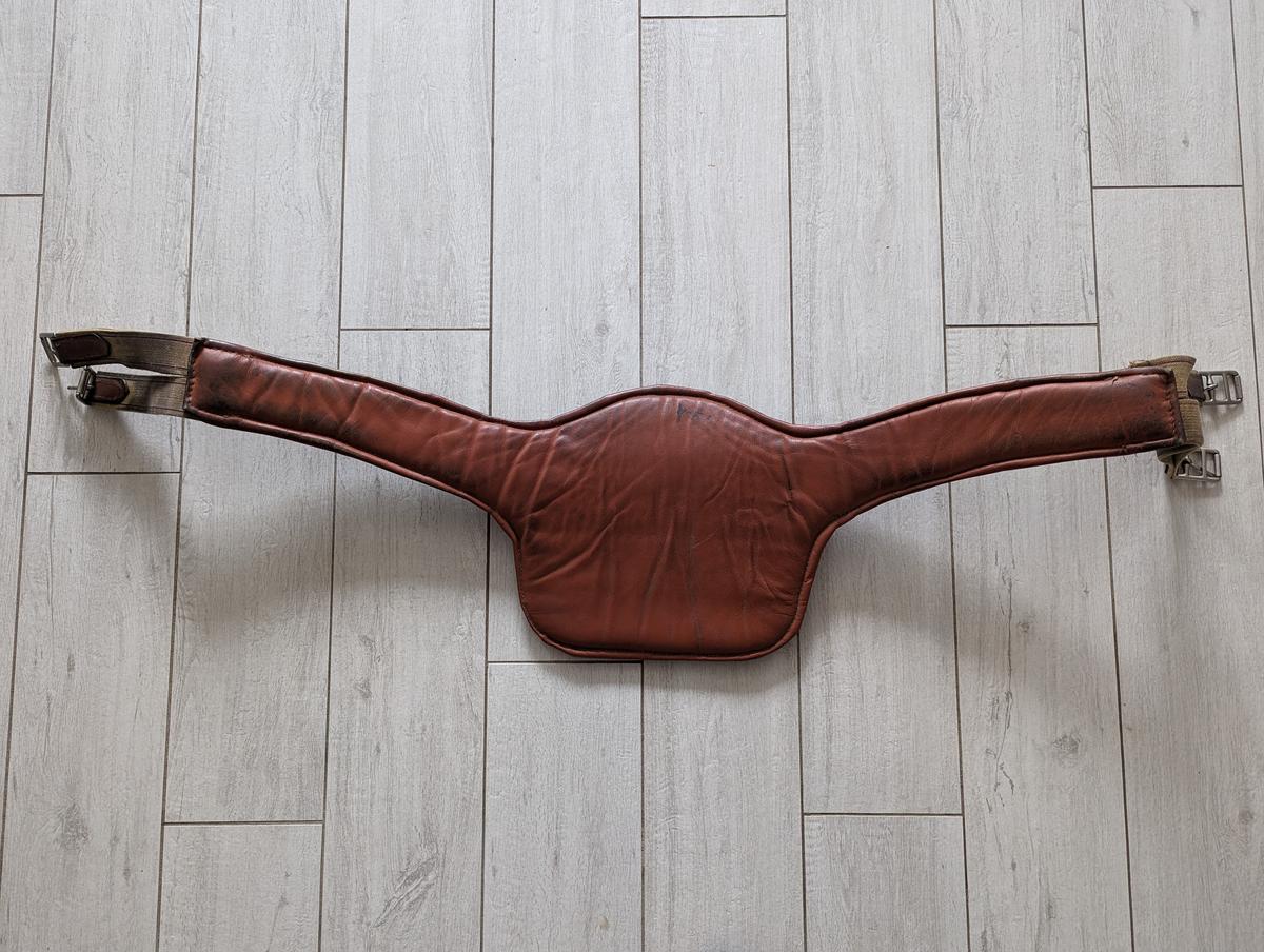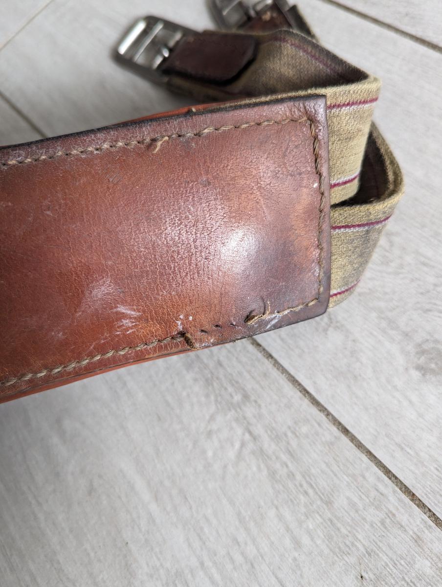Vends sangle bavette 125cm en cuir couleur marron.