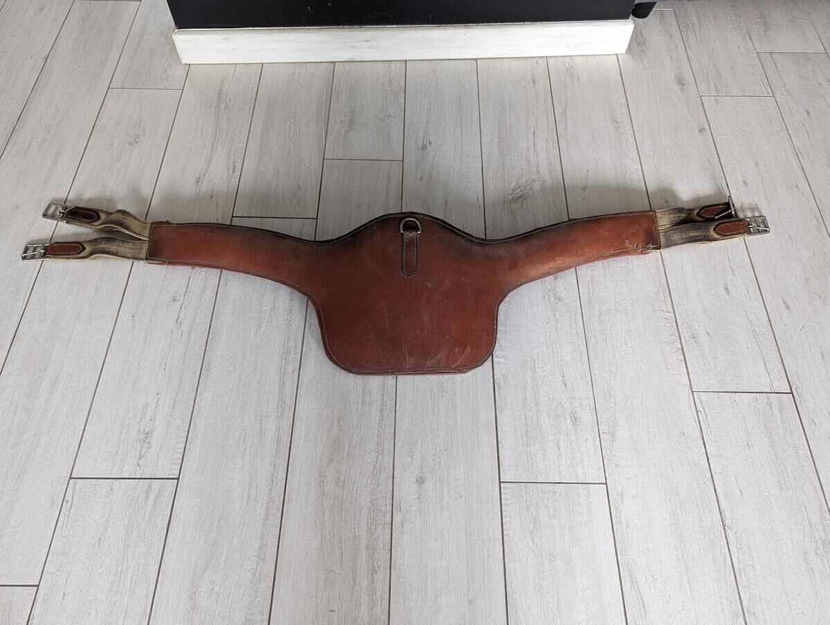 Vends sangle bavette 125cm en cuir couleur marron.