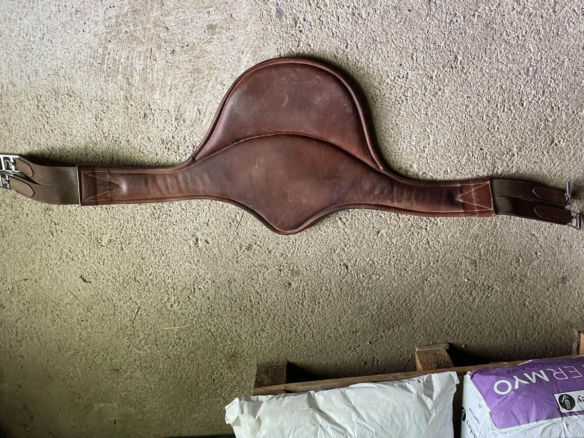 sangle bavette taille 125cm marque : Eric Thomas c’est une bavette en cuir de vachette utilisée quelques fois en concours seulement et reste donc en très très bon état comme vous pouvez le voir! Elle sera vendue et livrée nettoyée et graissée :) raison de la vente : trop petite pour mon nouveau cheval ….