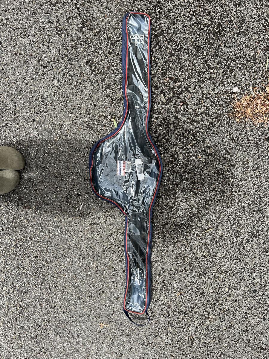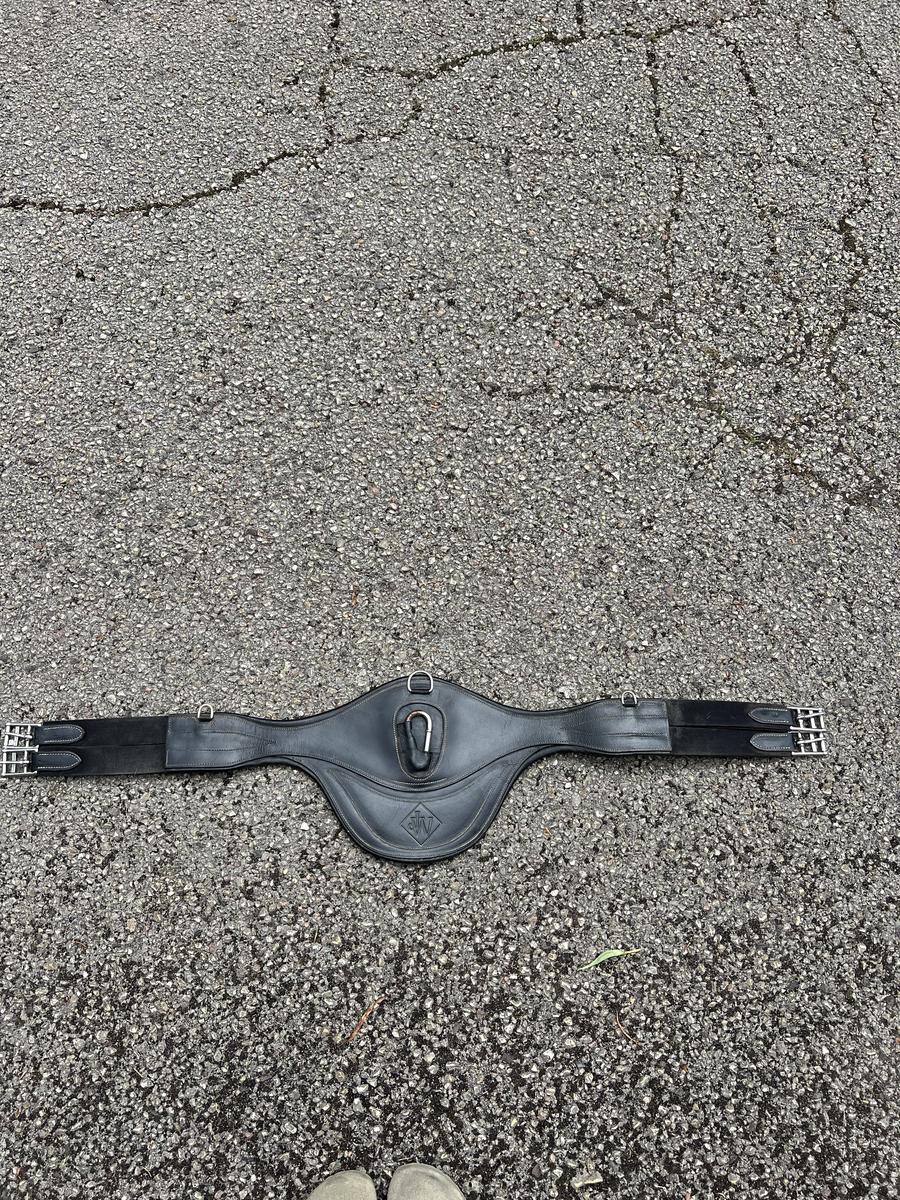 Bavette 115 cm pour poney/ double poney. Elle est en bon état, presque très bon état, cuir noir.