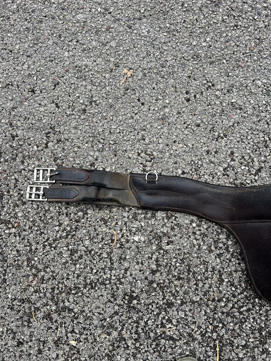 Bavette CWD en cuir marron foncé pas mal portée. Taille : 125cm