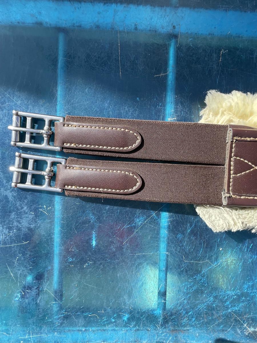 Bavette Kentucky mouton en cuir marron. Elle est comme neuve car n’a servie que 2 ou 3 fois.