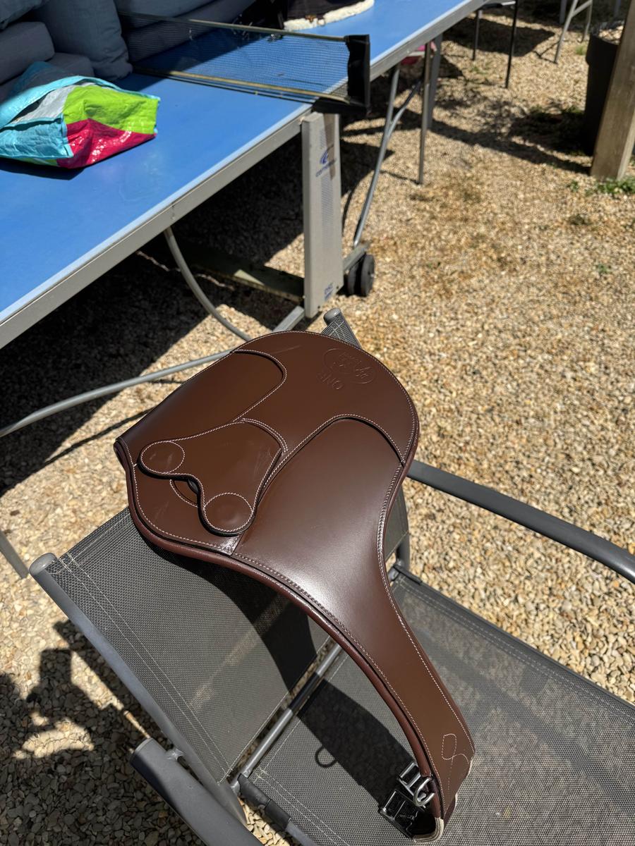 bavette jump'in avec sécurité, taille 130 en parfait état. acheté il y a 2 mois malheureusement je change de modèle de selle pour une mono quartier à sanglante bas. sangle utilisé maximum 10 fois acheté neuve à : 195