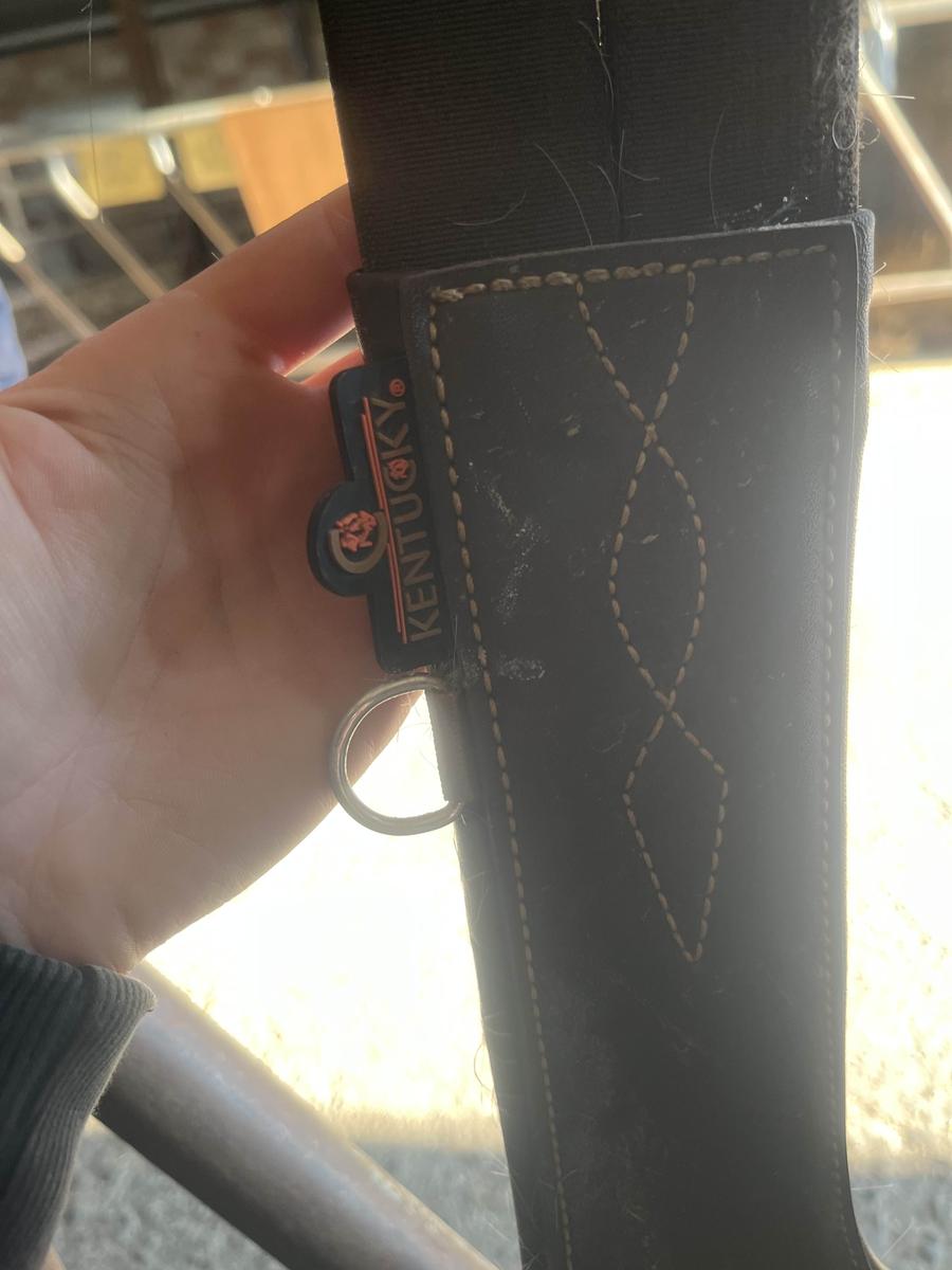 À vendre bavette Kentucky taille 120cm brune. Elle a des élastiques et deux côtés . Toujours très bien entretenue, et en très bon état. Très peu utilisé.