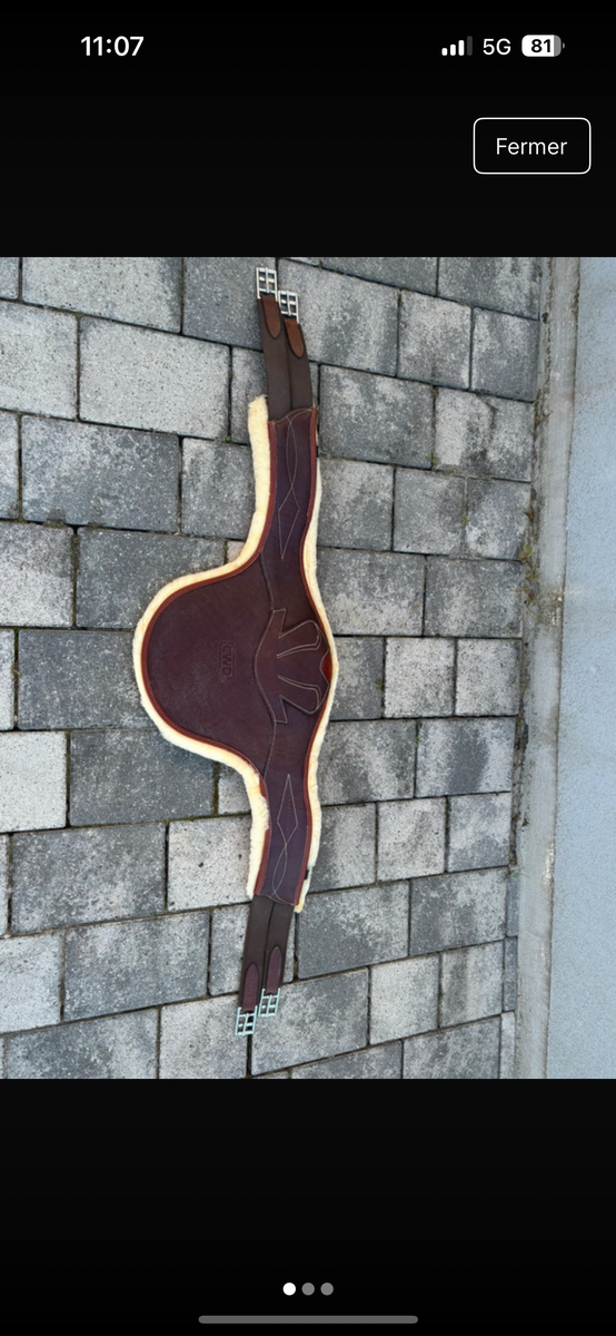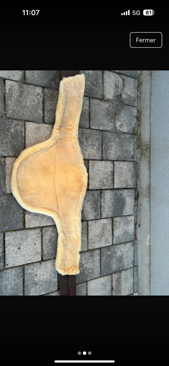 Sangle bavette CWD couleur marron intérieur mouton taille 135 état neuf, utilisée moins de 10x en concours.