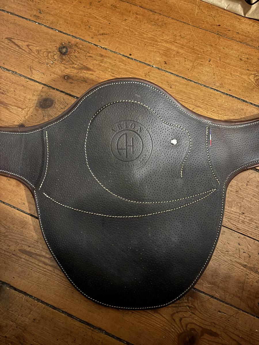 Sangle bavette anatomique marron Arion 125 cm Neuf juste essayer lors d’une courte séance. Je la vends car elle est trop petite pour mon cheval. Sanglons élastique, cuir, mousqueton pour la martingale avec sa protection aimantée. Possibilité d’attaché un collier de chasse 5 points ou des rênes allemandes. Prix neuf : 370€ Sera nettoyé avant l’envoi. Possibilité de faire des offres dans la limite du raisonnable ‼️