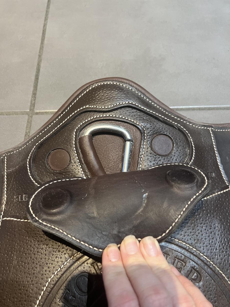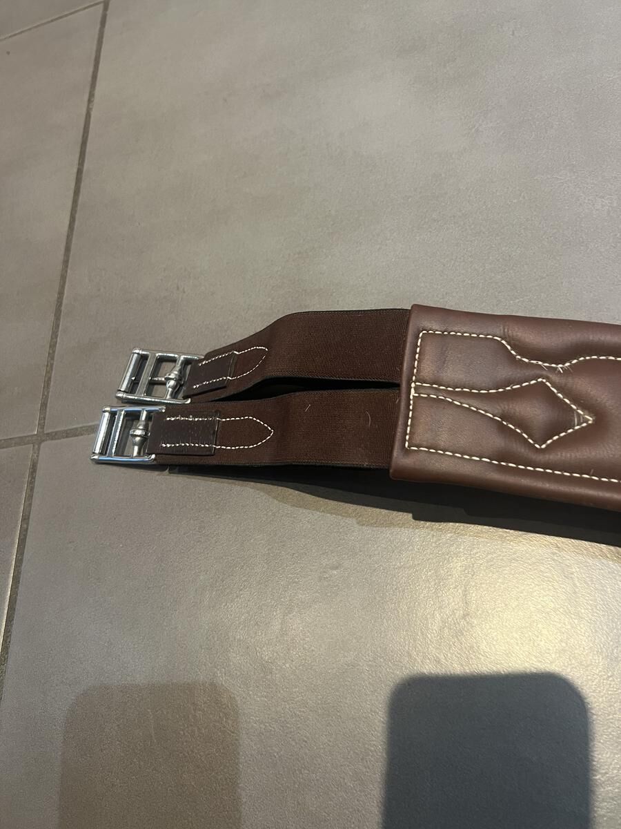 Utilisée durant 6 mois seulement elle est en très bon état de couleur marron, cuir de veau, sanglons pas détendus en très bon état aussi.