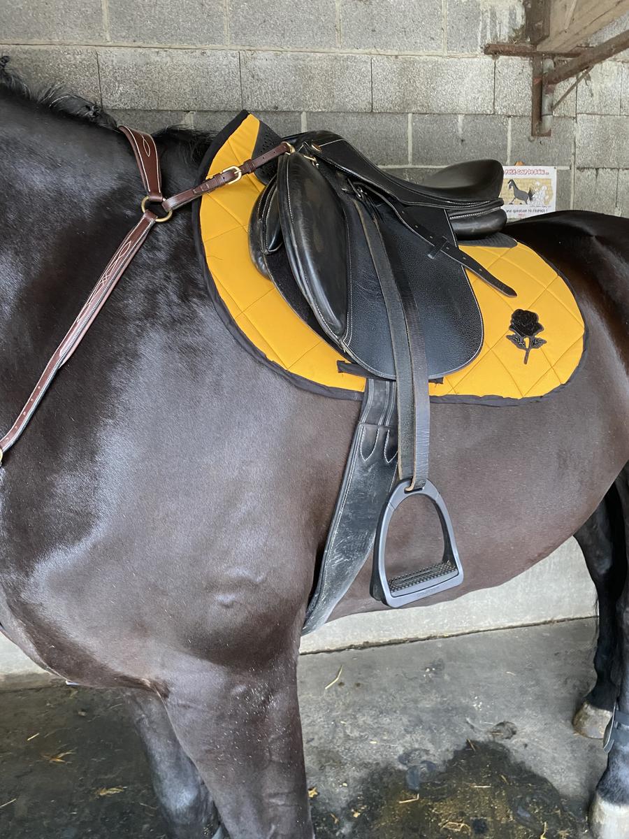 Sangle Fouganza Romeo taille 135. Très bon état sera nettoyée avant envoi. Élastique état nickel cuir pas craquelé
