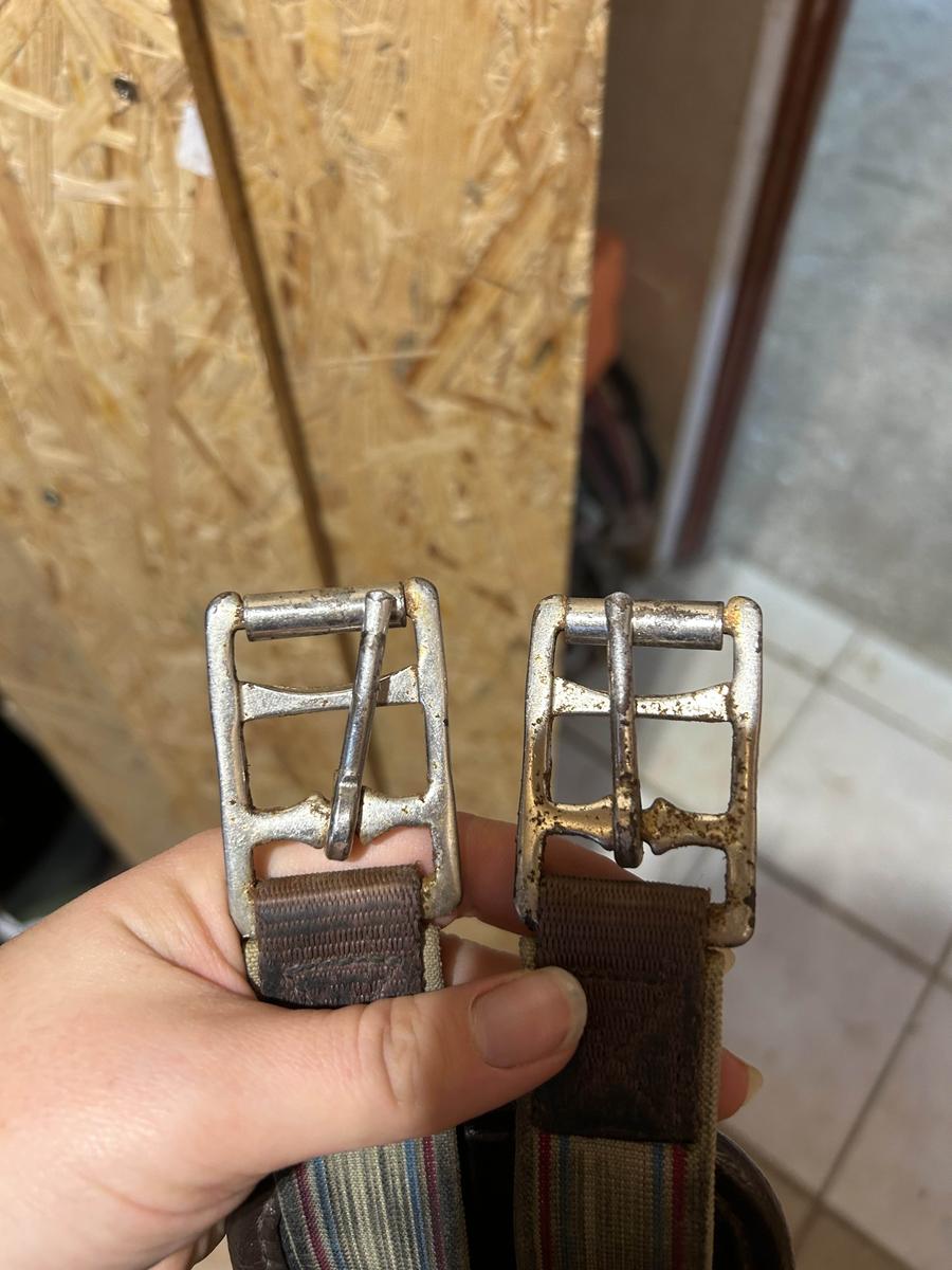 sangle marron TdeT, taille 135, en bon état (bouclerie abîmée)